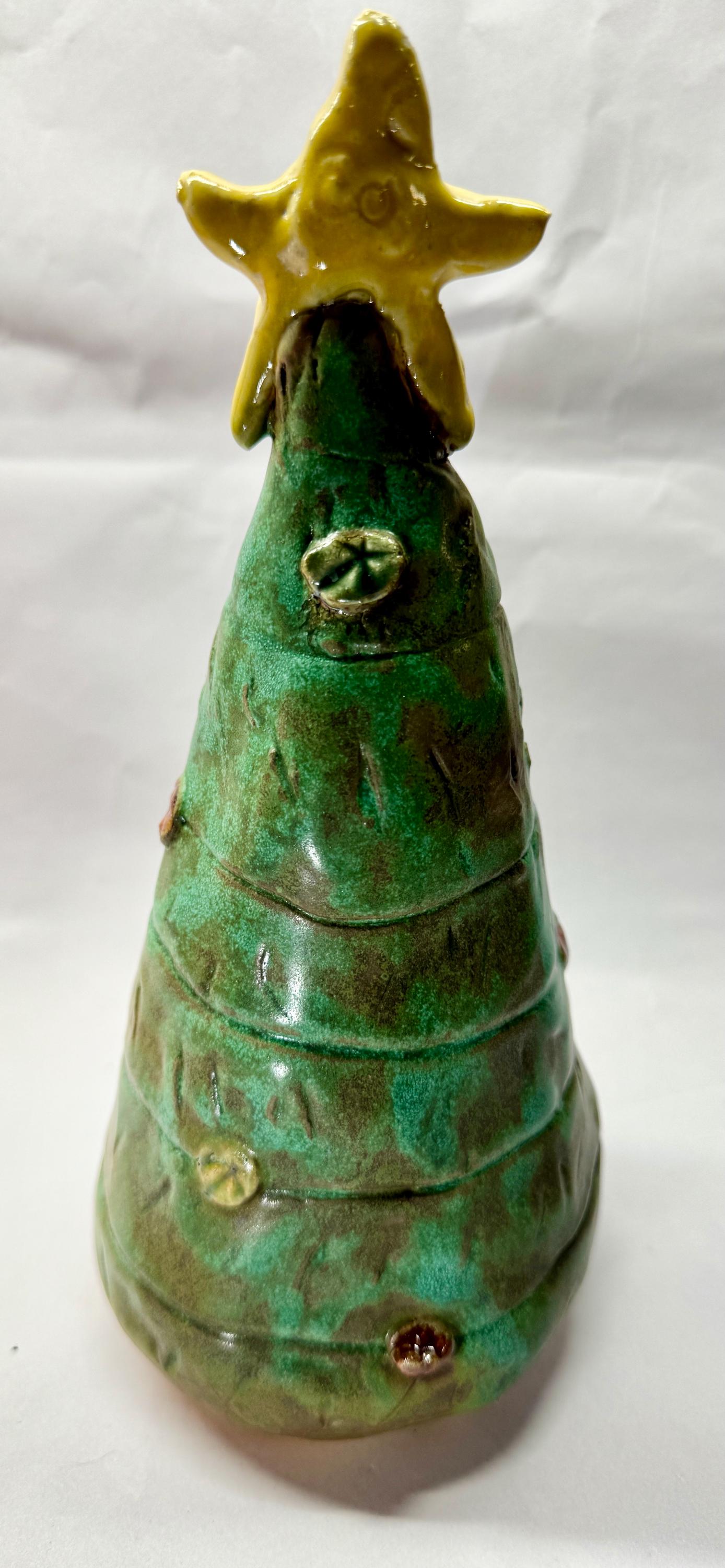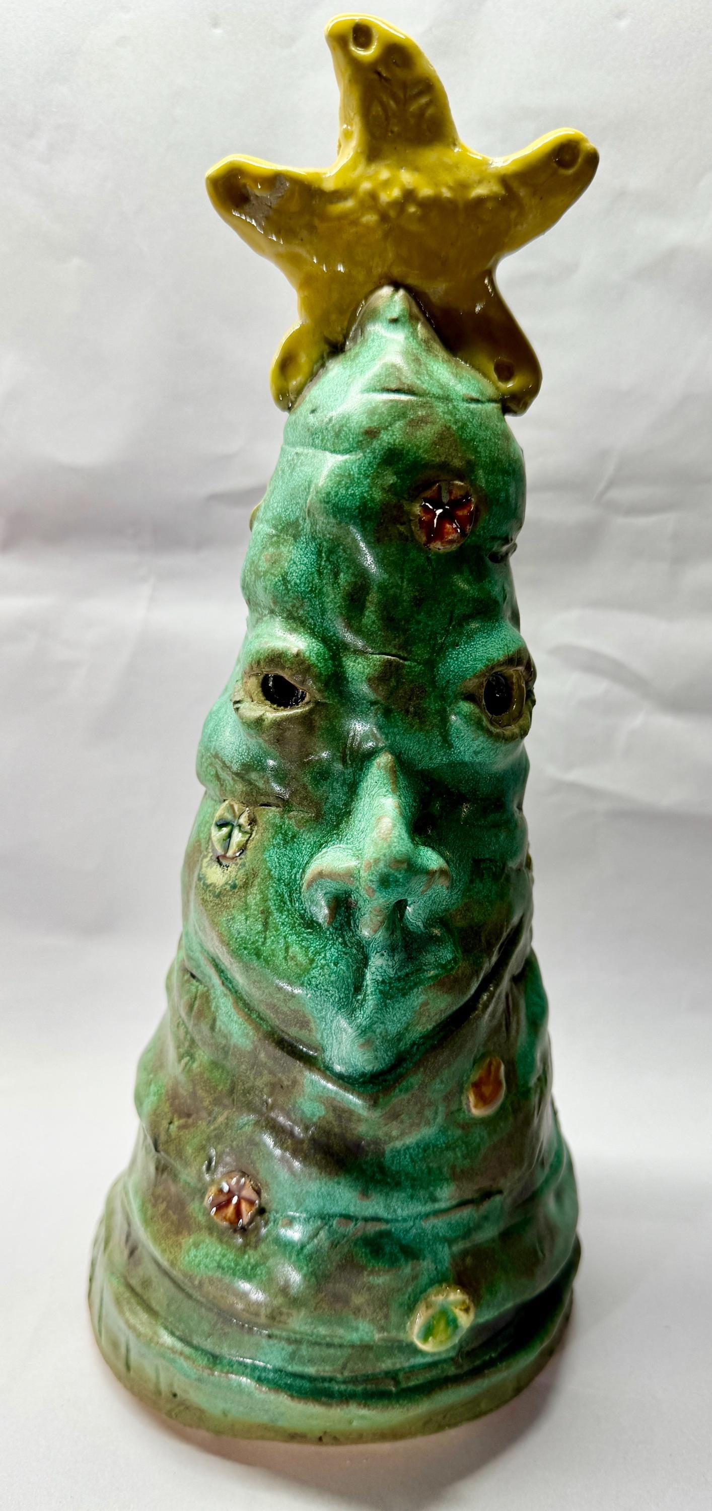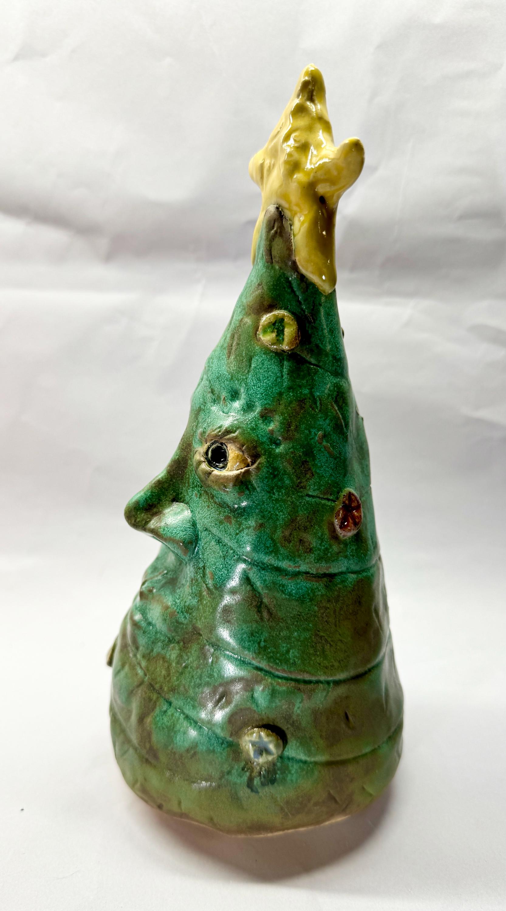 This listing is for 2 whimsical Christmas trees with happy faces to brighten your holiday. Each piece is adorned with colourful ornaments and a yellow tree topper.This handmade piece measures approximately 9” tall and 4”wide and 11” by 4”.