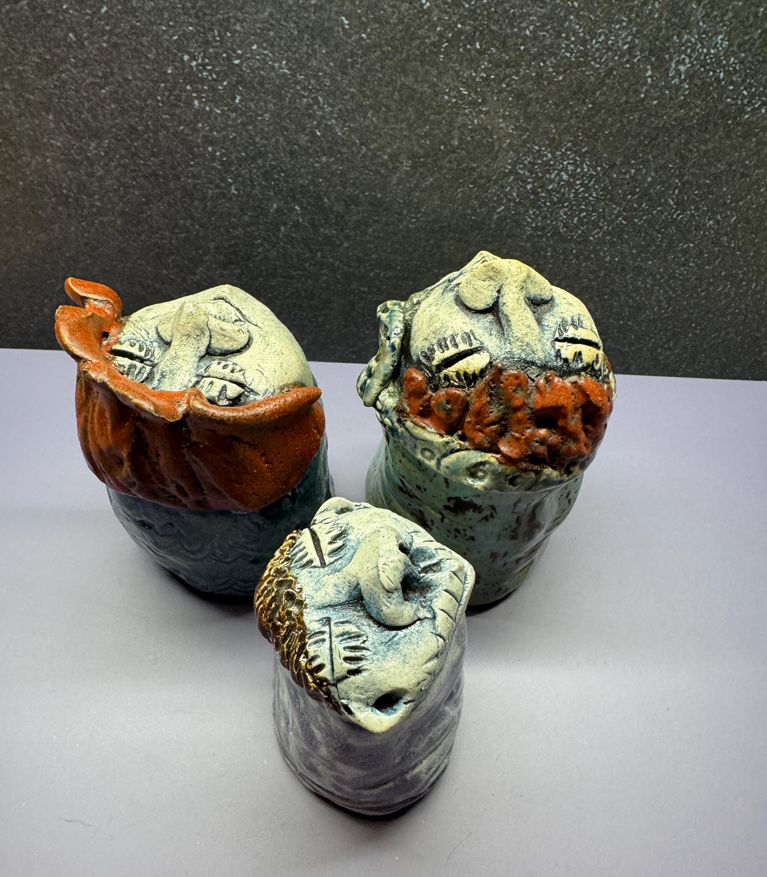 Each clay soul measures between 4”-5” tall and 3” wide.