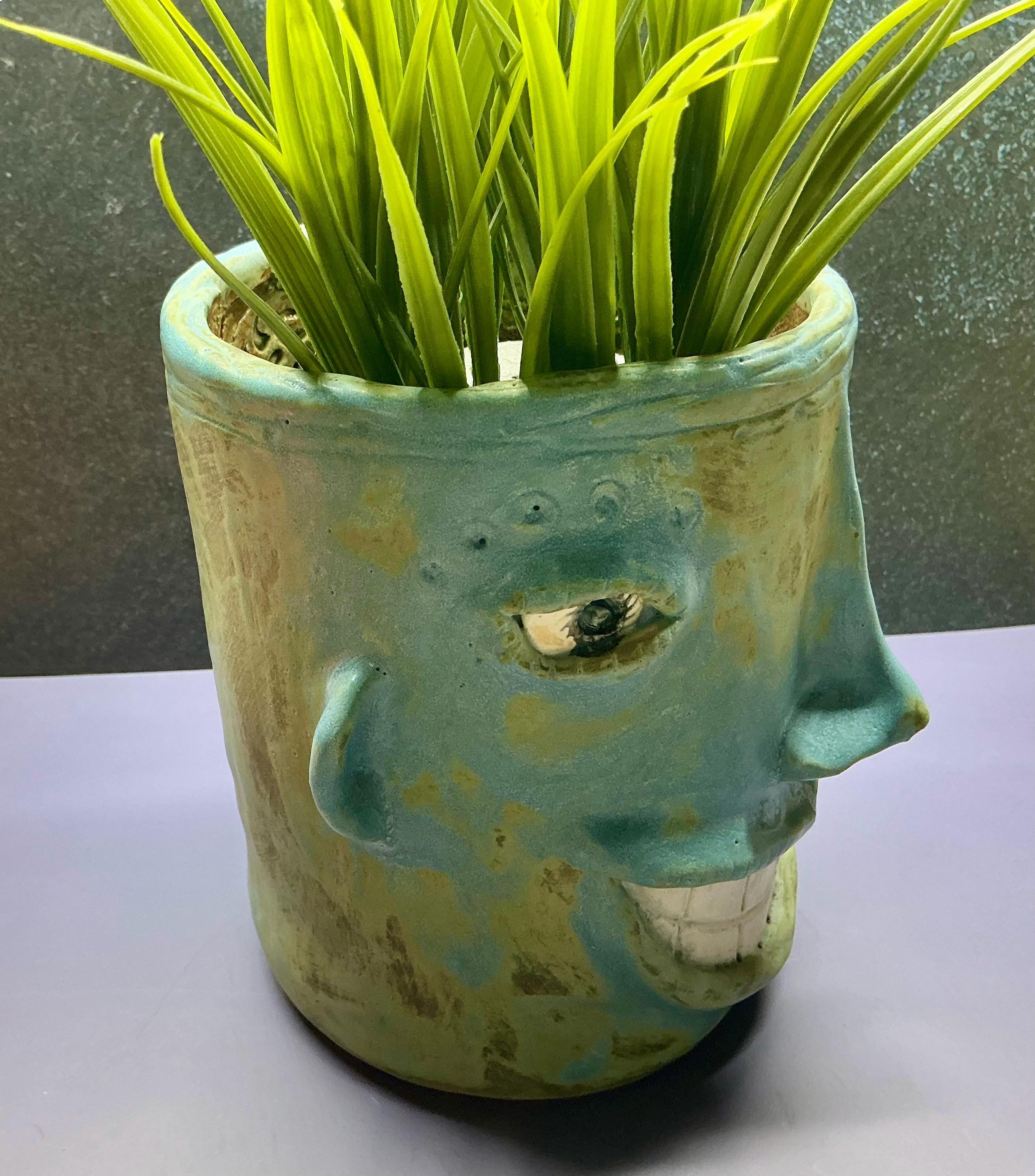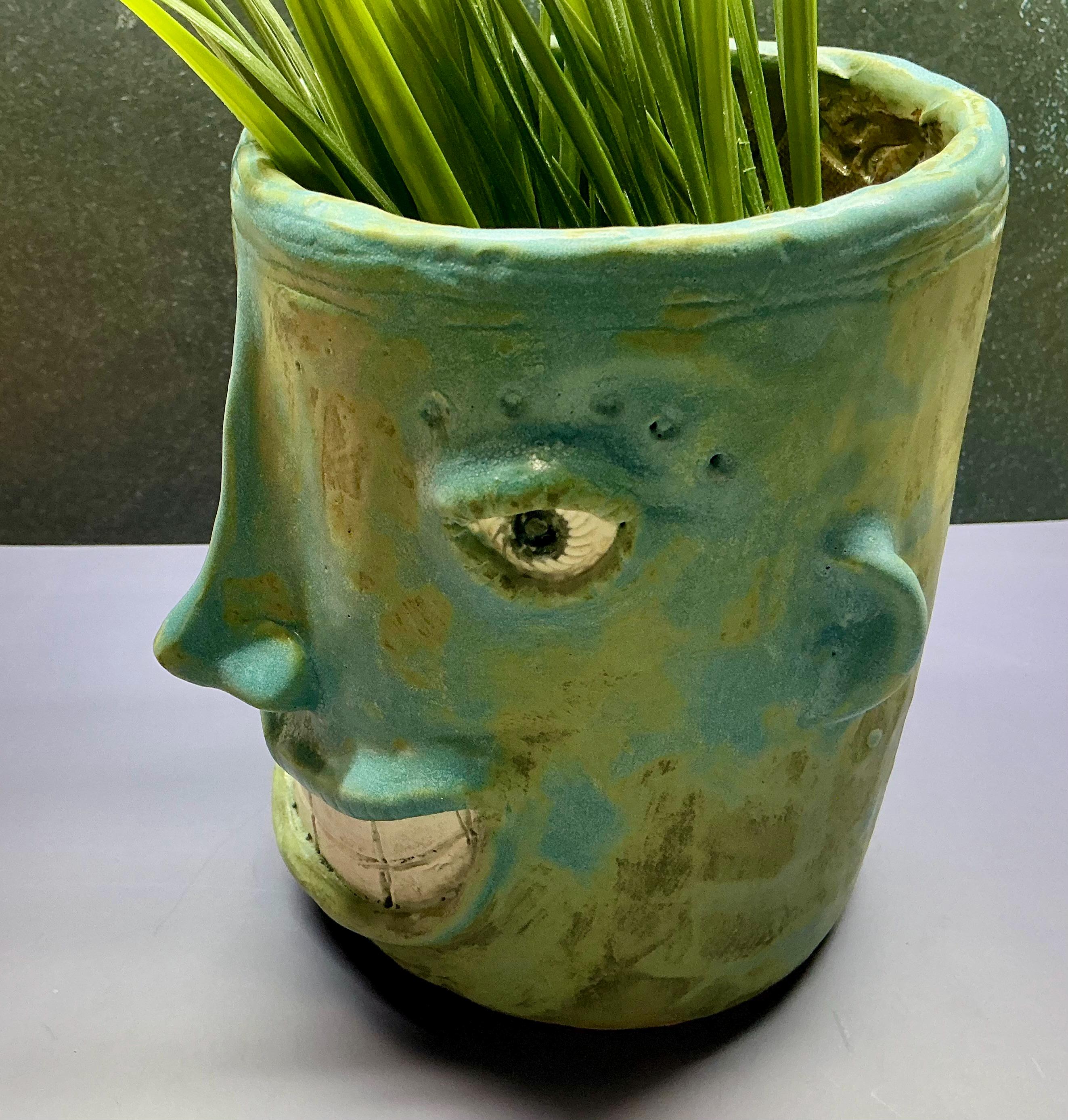 This listing is for one handmade ceramic face planter. Each piece has a whimsical face and is high fired to over 2200 degrees so you can place them indoors or out in all but extreme temperatures. These pieces look great with succulents, cat grass or other plant that looks like hair.