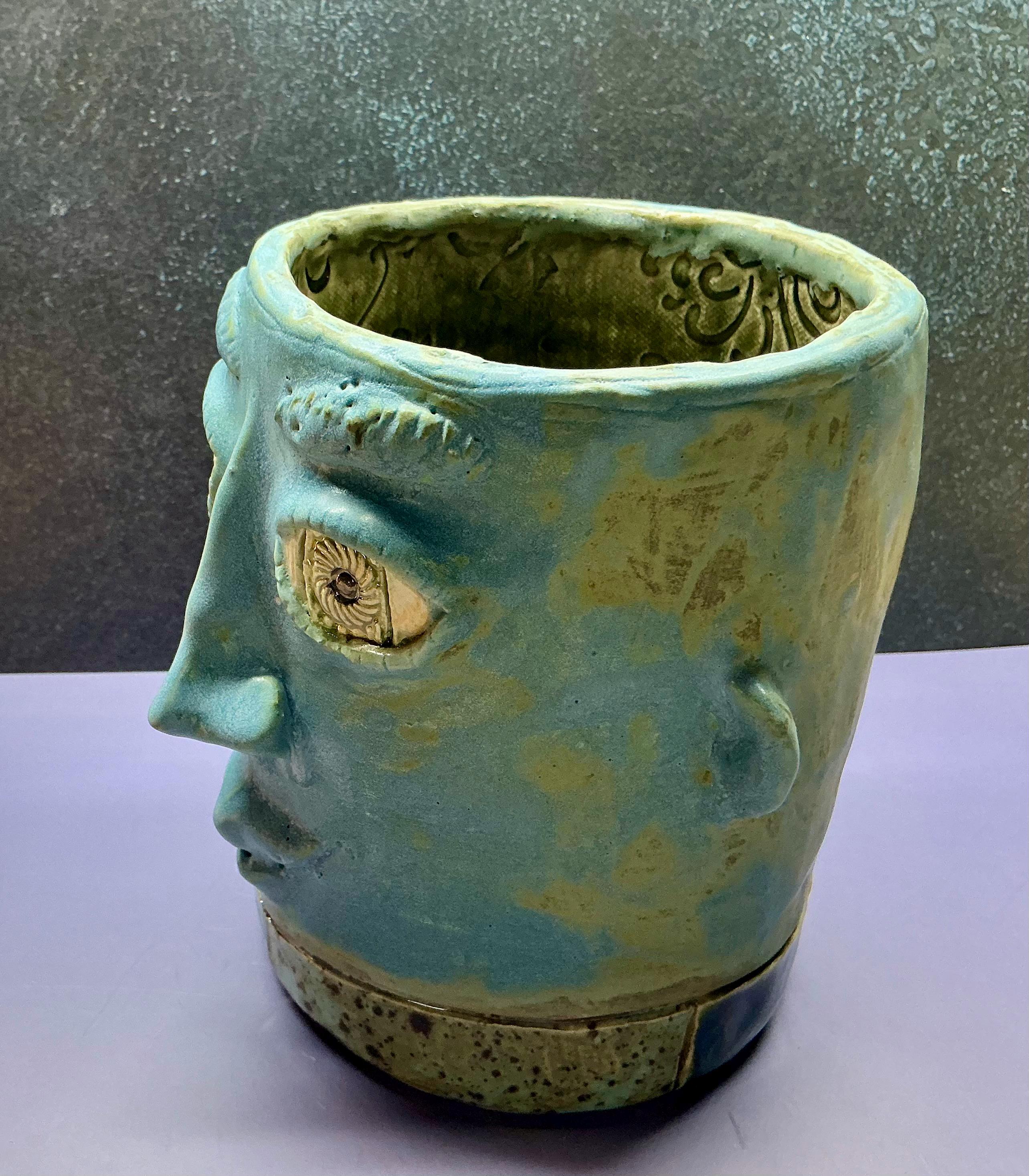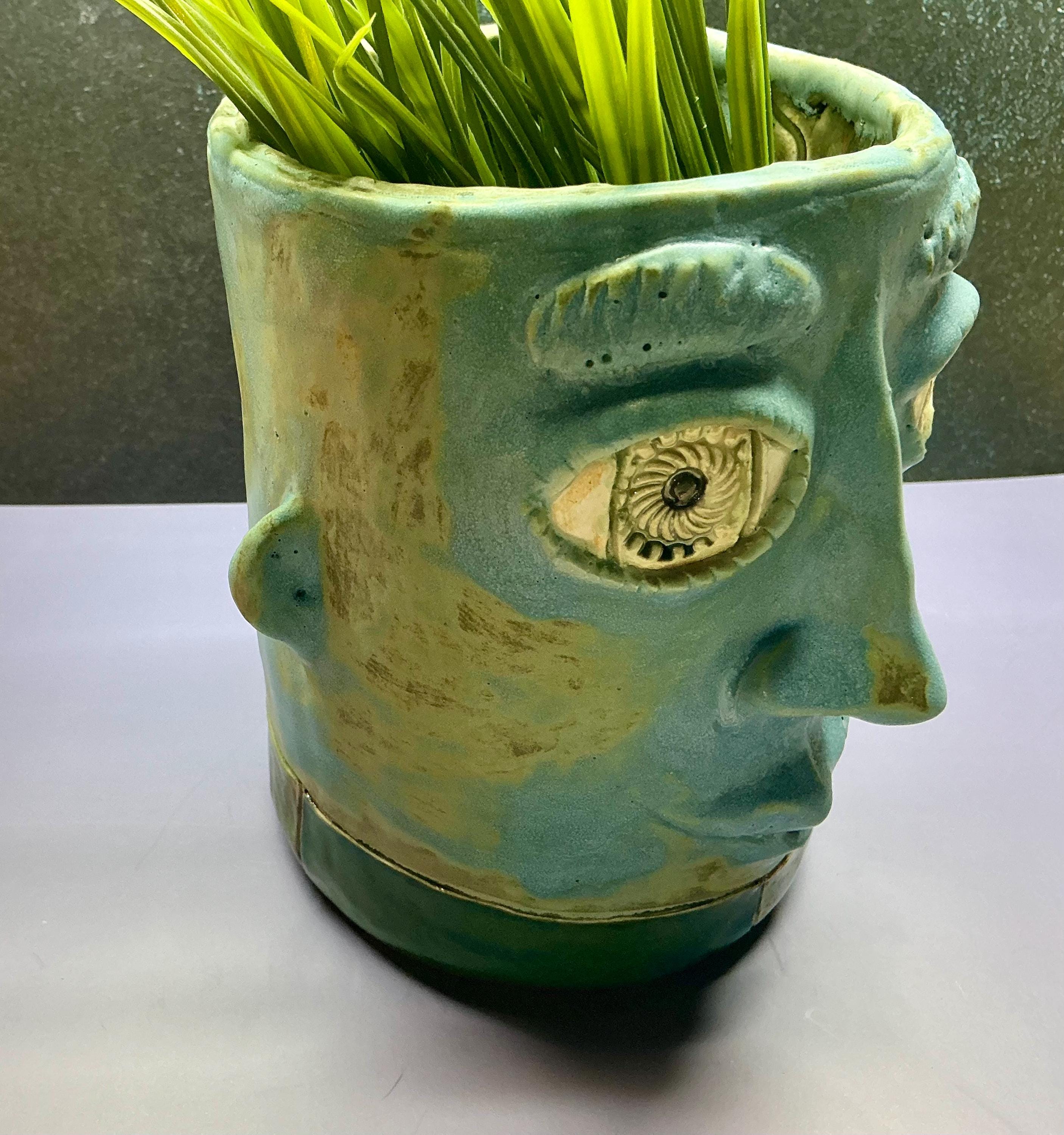 This listing is for one handmade ceramic face planter. Each piece has a whimsical face and is high fired to over 2200 degrees so you can place them indoors or out in all but extreme temperatures. These pieces look great with succulents, cat grass or other plant that looks like hair.