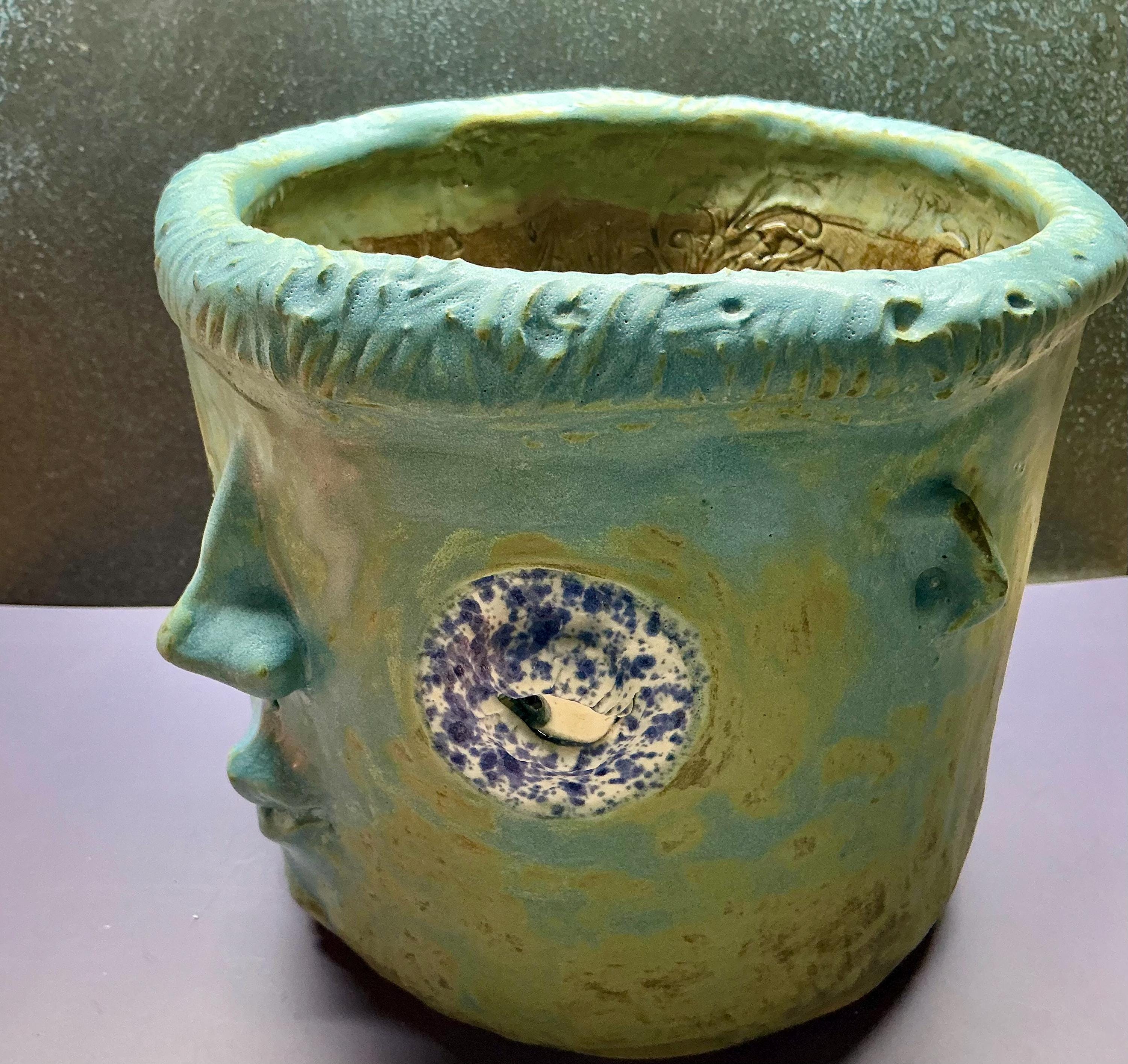 This listing is for one handmade ceramic face planter. Each piece has a whimsical face and is high fired to over 2200 degrees so you can place them indoors or out in all but extreme temperatures. These pieces look great with succulents, cat grass or other plant that looks like hair.