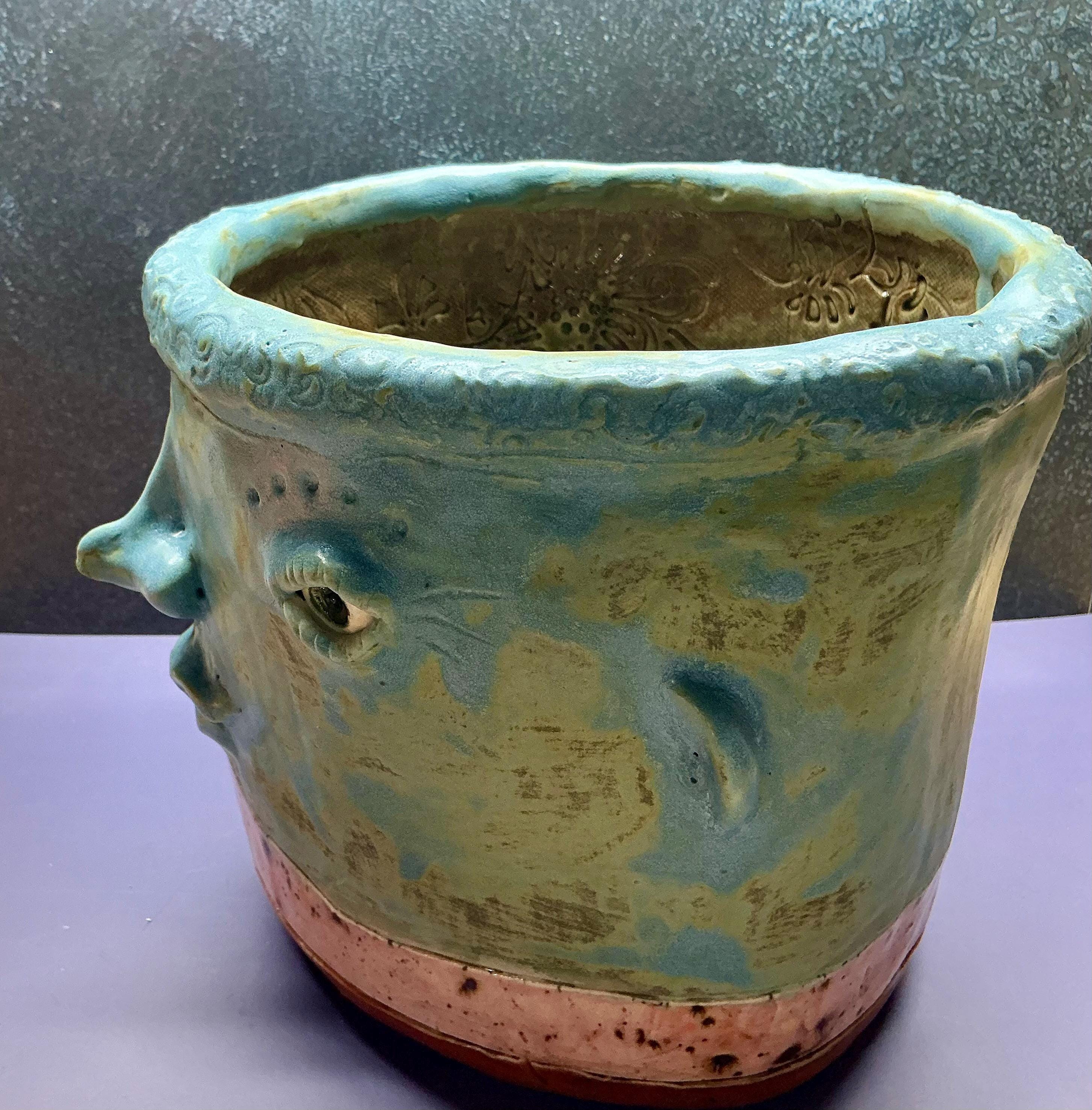 This listing is for one handmade ceramic face planter. Each piece has a whimsical face and is high fired to over 2200 degrees so you can place them indoors or out in all but extreme temperatures. These pieces look great with succulents, cat grass or other plant that looks like hair.