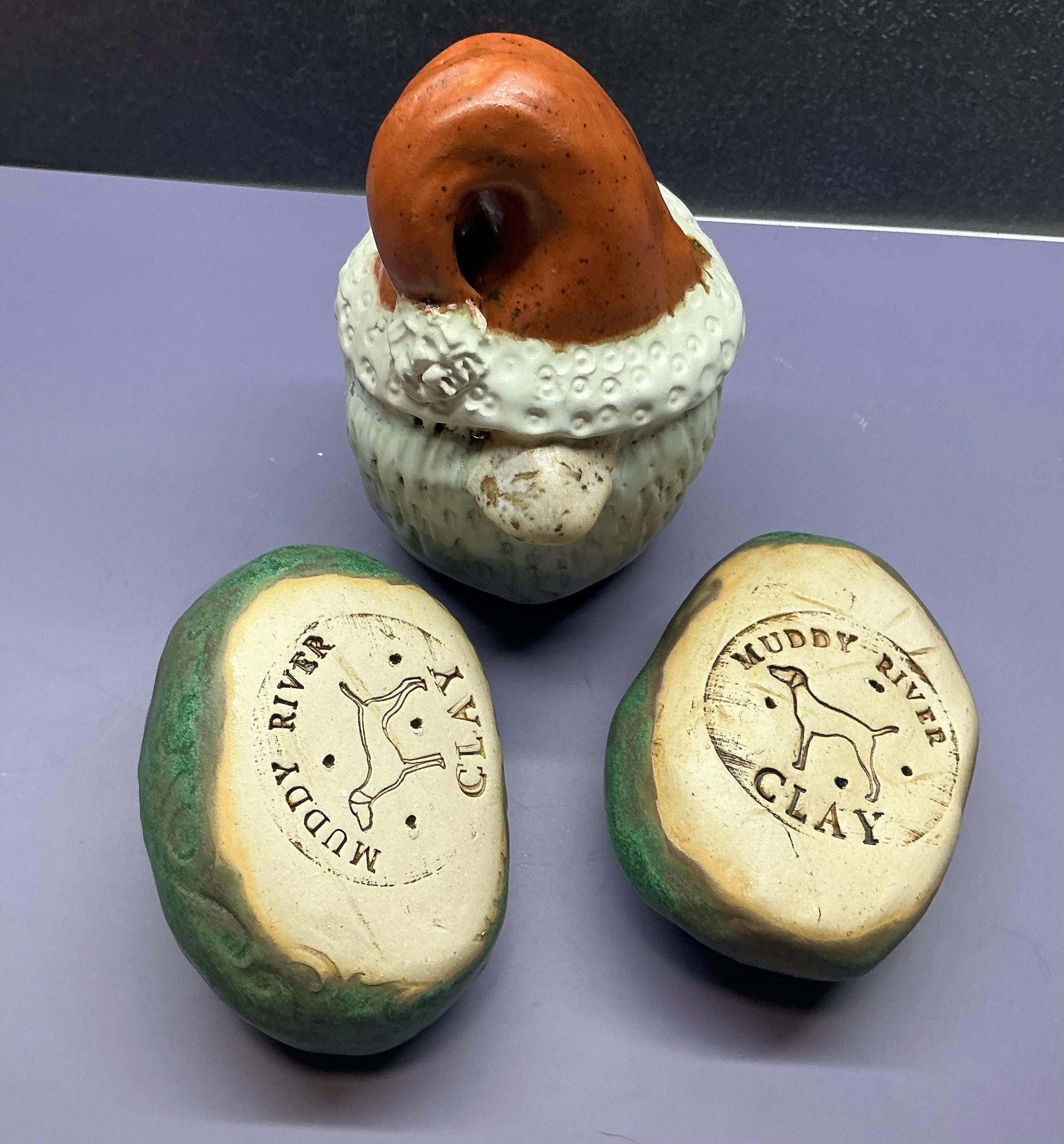 This listing is for three ceramic pieces. It includes a festive gnome and two gnome stones. The gnome measures approximately 5” tall and 3” wide. Each of the 2 stones feature a gnome and measure approximately 4” x 3 inches. The gnome stones have small ceramic pieces inside and rattle when you shake them.