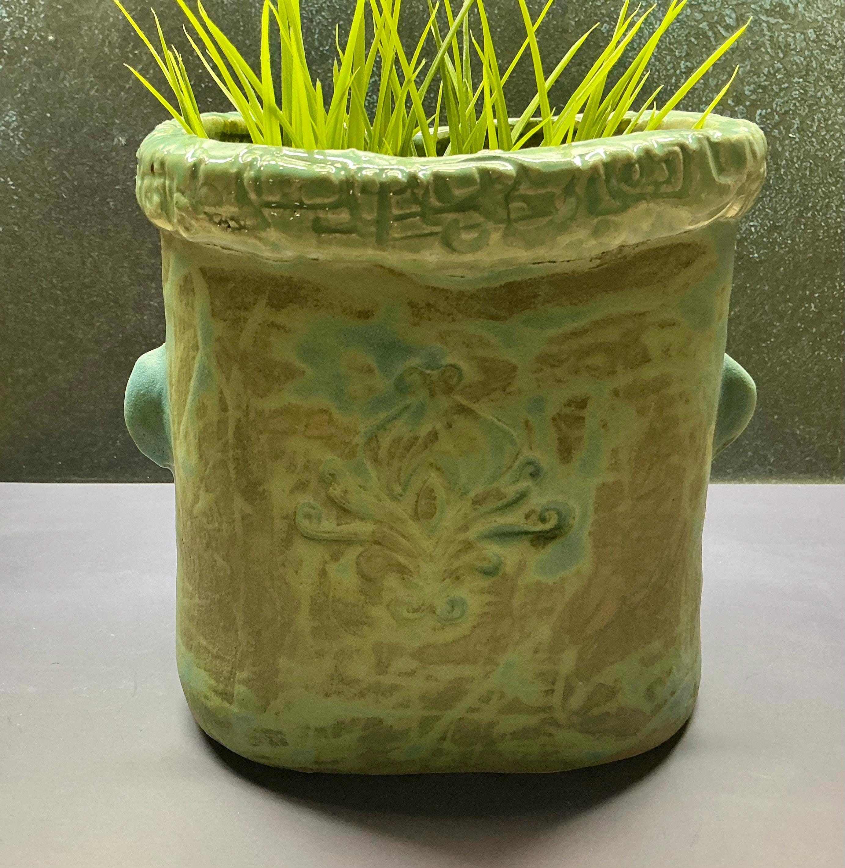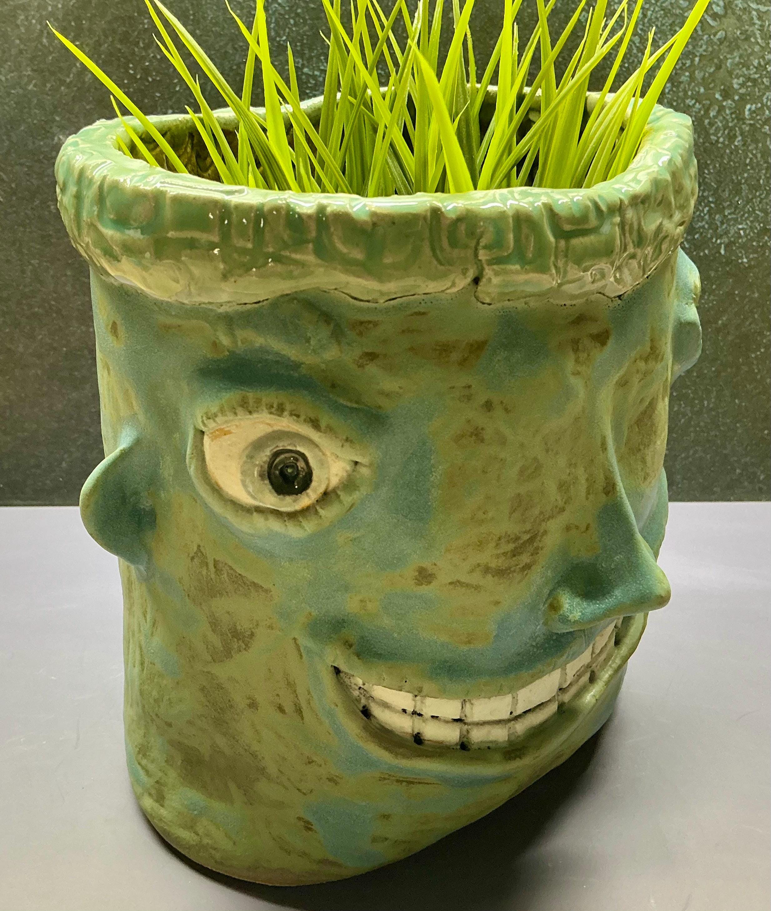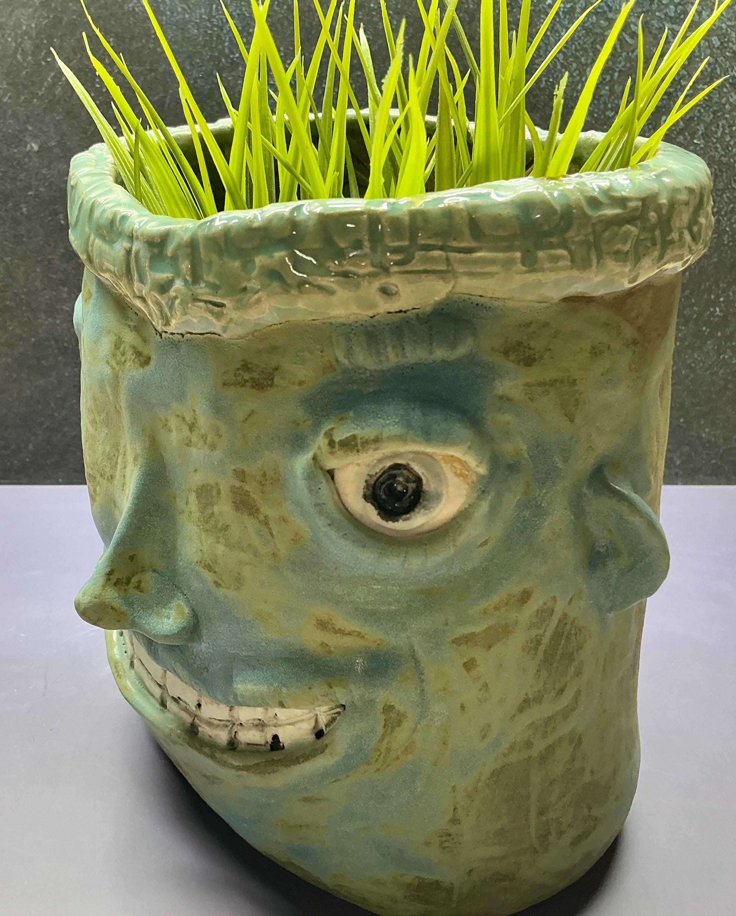 This listing is for one handmade ceramic face planter. Each piece has a whimsical face and is high fired to over 2200 degrees so you can place them indoors or out in all but extreme temperatures. These pieces look great with succulents, cat grass or other plant that looks like hair.