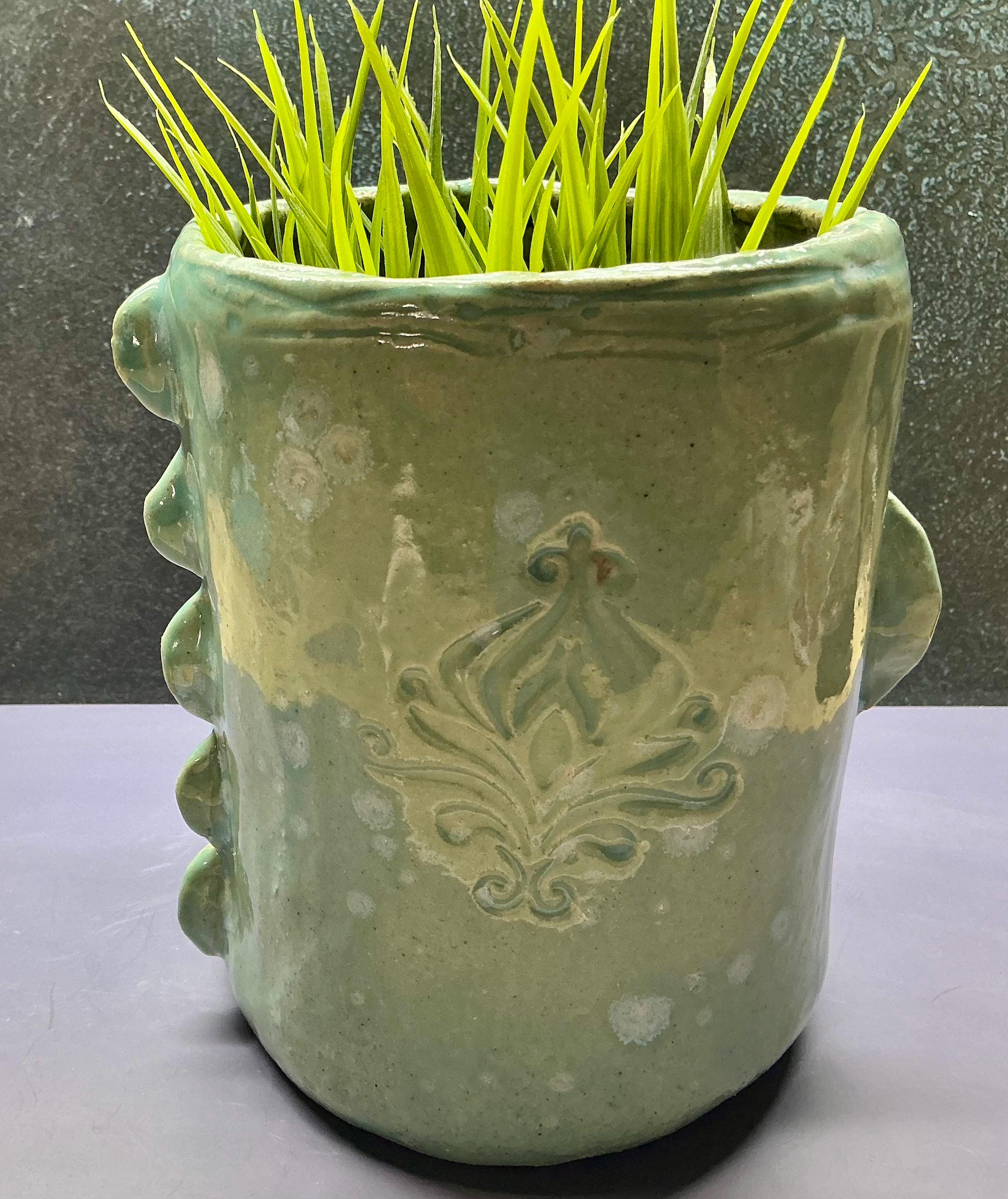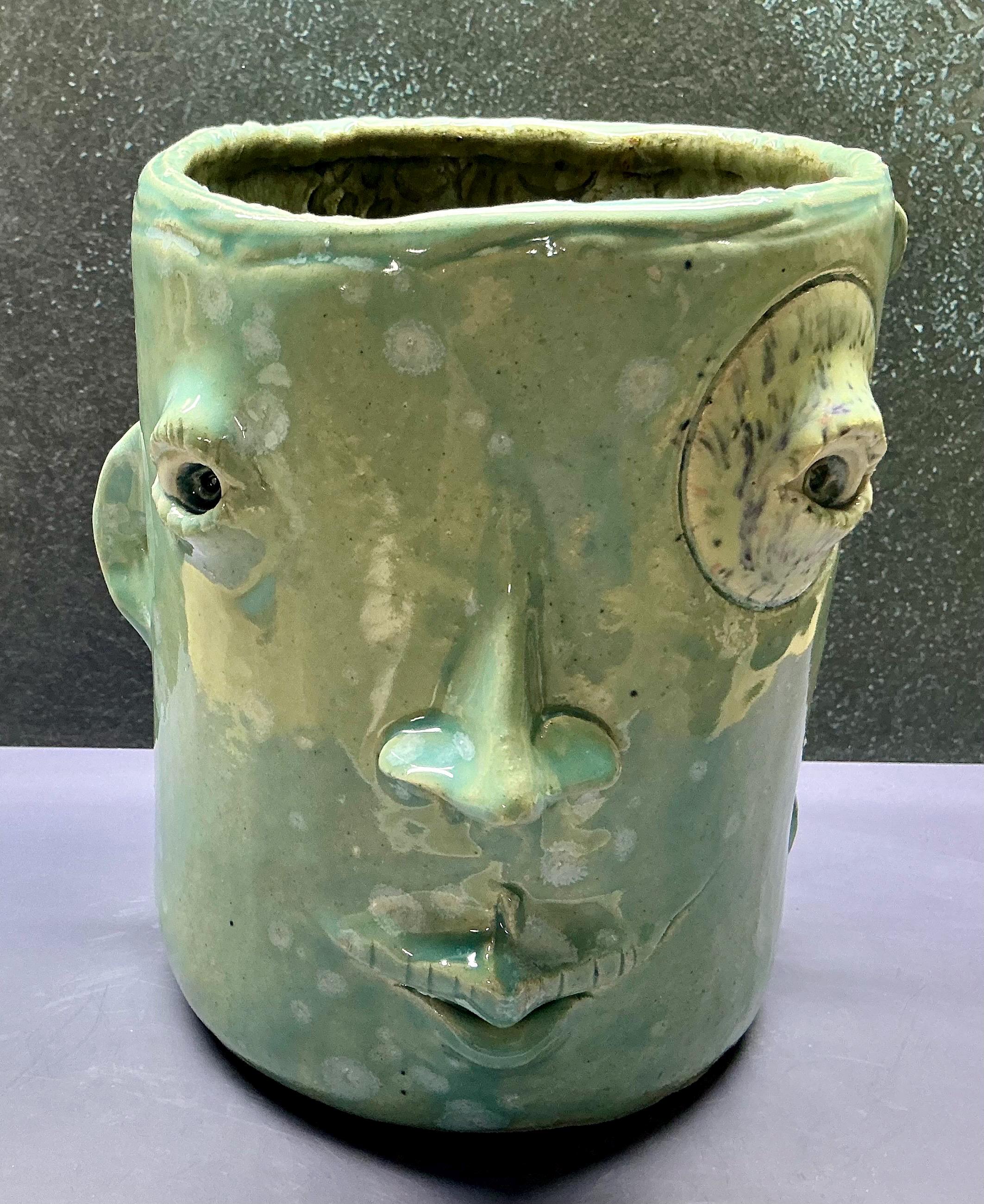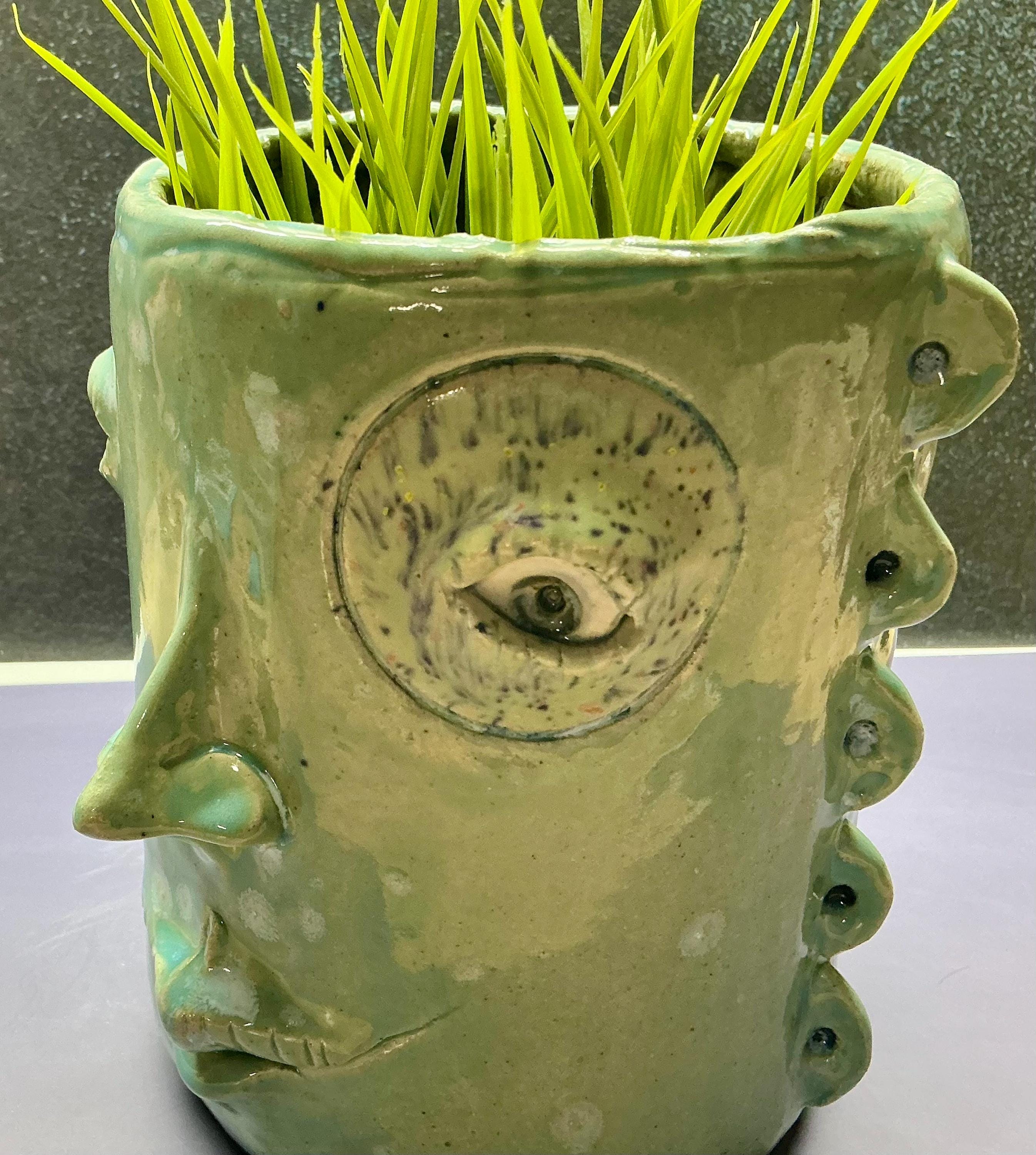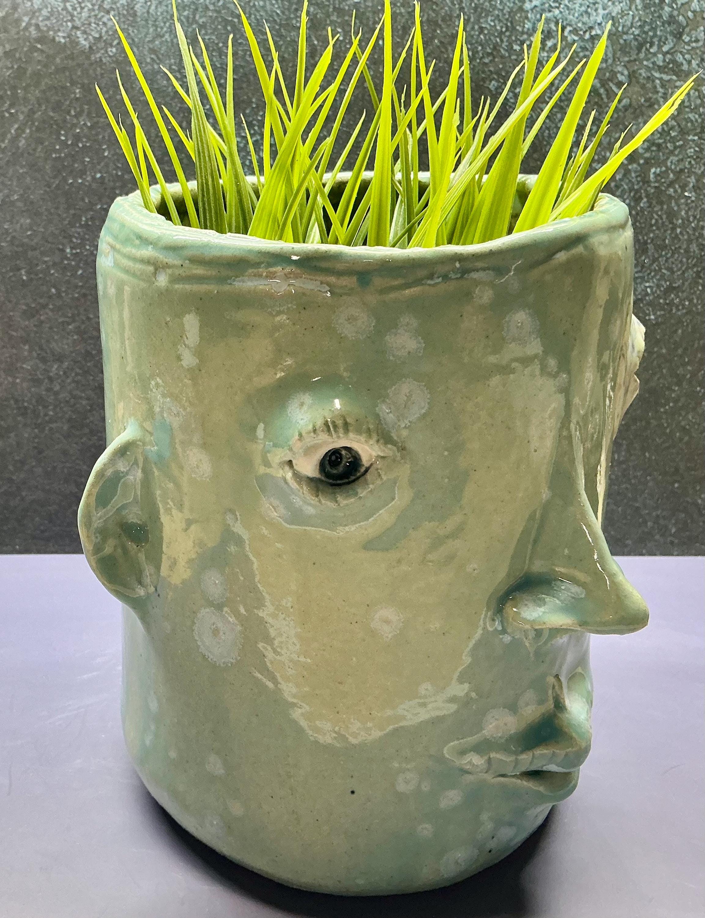 This listing is for one handmade ceramic face planter. Each piece has a whimsical face and is high fired to over 2200 degrees so you can place them indoors or out in all but extreme temperatures. These pieces look great with succulents, cat grass or other plant that looks like hair.