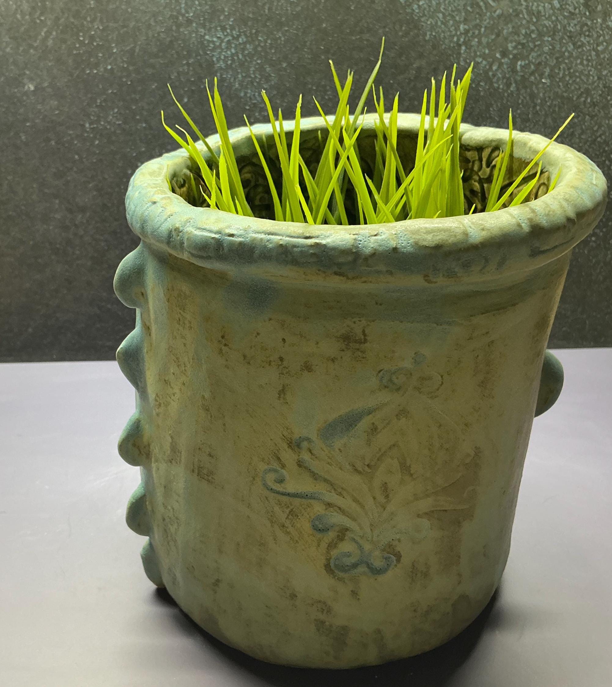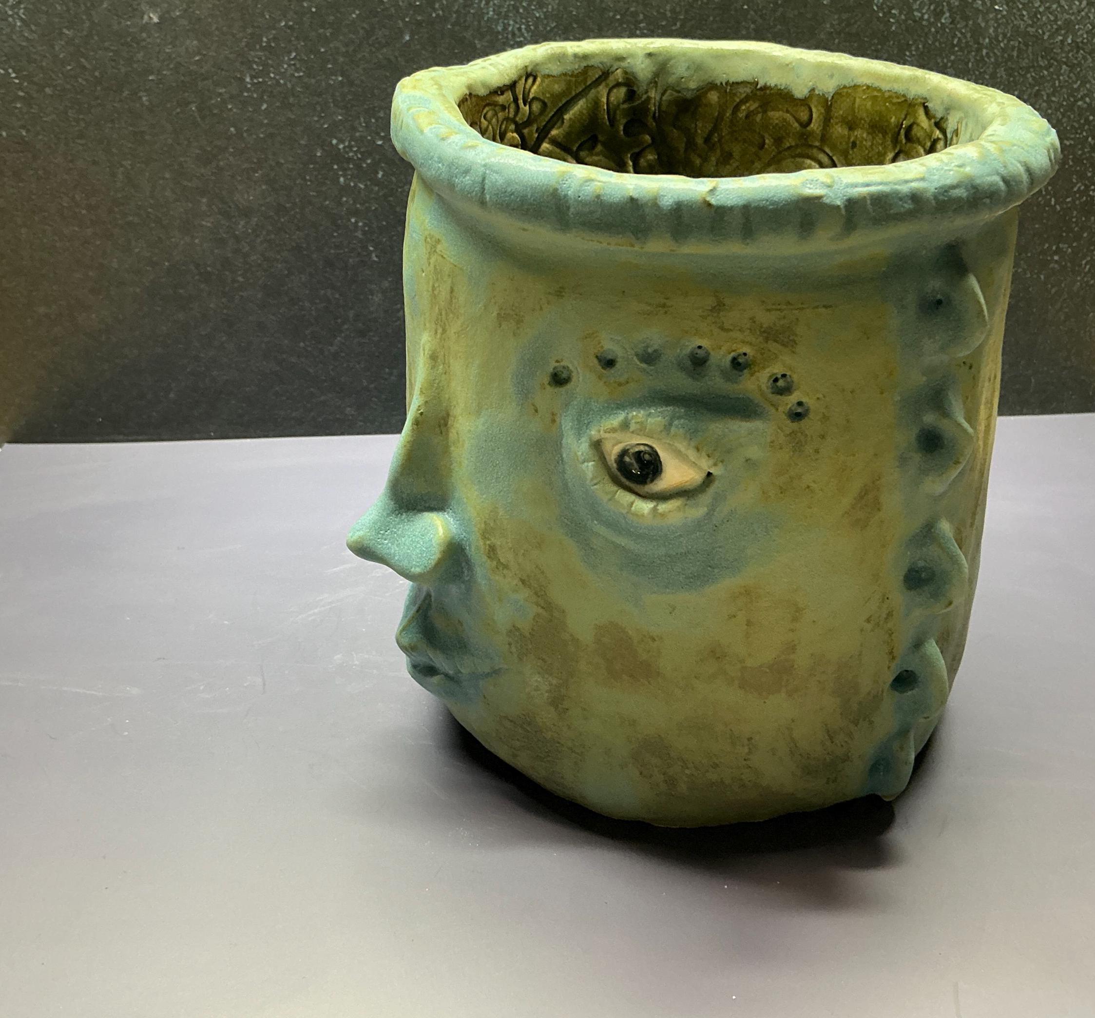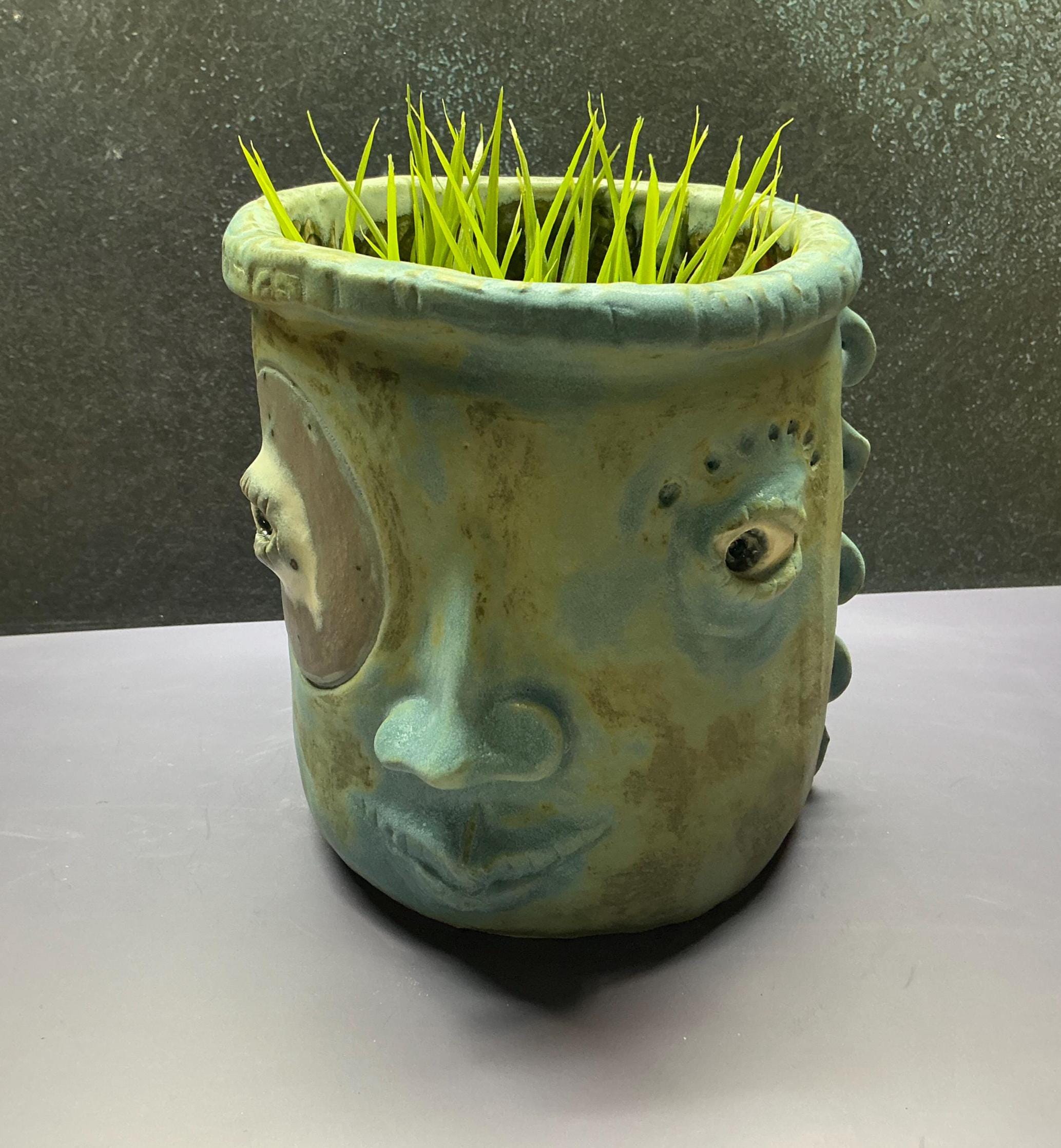 This listing is for one handmade ceramic face planter. Each piece has a whimsical face and is high fired to over 2200 degrees so you can place them indoors or out in all but extreme temperatures. These pieces look great with succulents, cat grass or other plant that looks like hair.