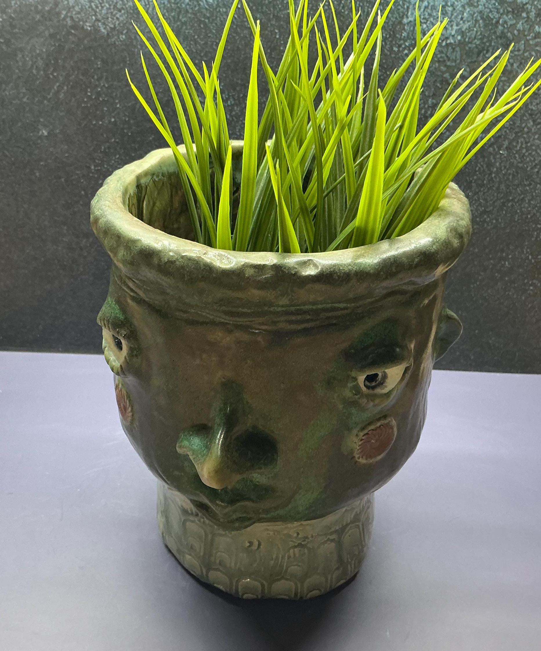 This listing is for one handmade ceramic face planter. Each piece has a whimsical face and is high fired to over 2200 degrees so you can place them indoors or out in all but extreme temperatures. These pieces look great with succulents, cat grass or other plant that looks like hair.