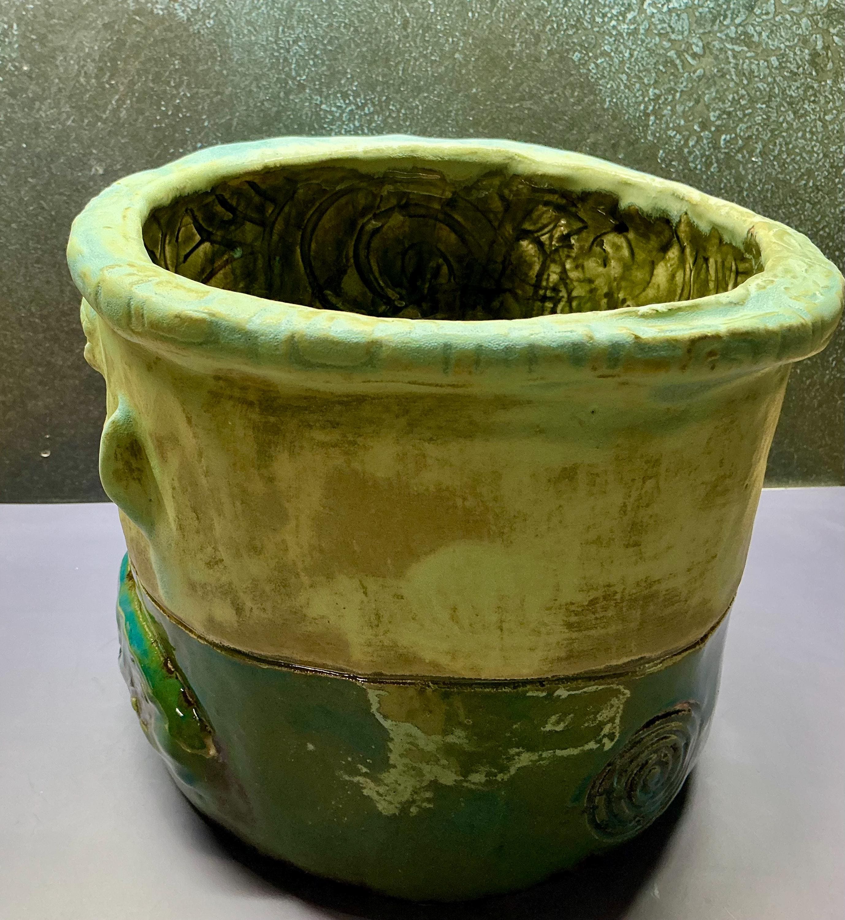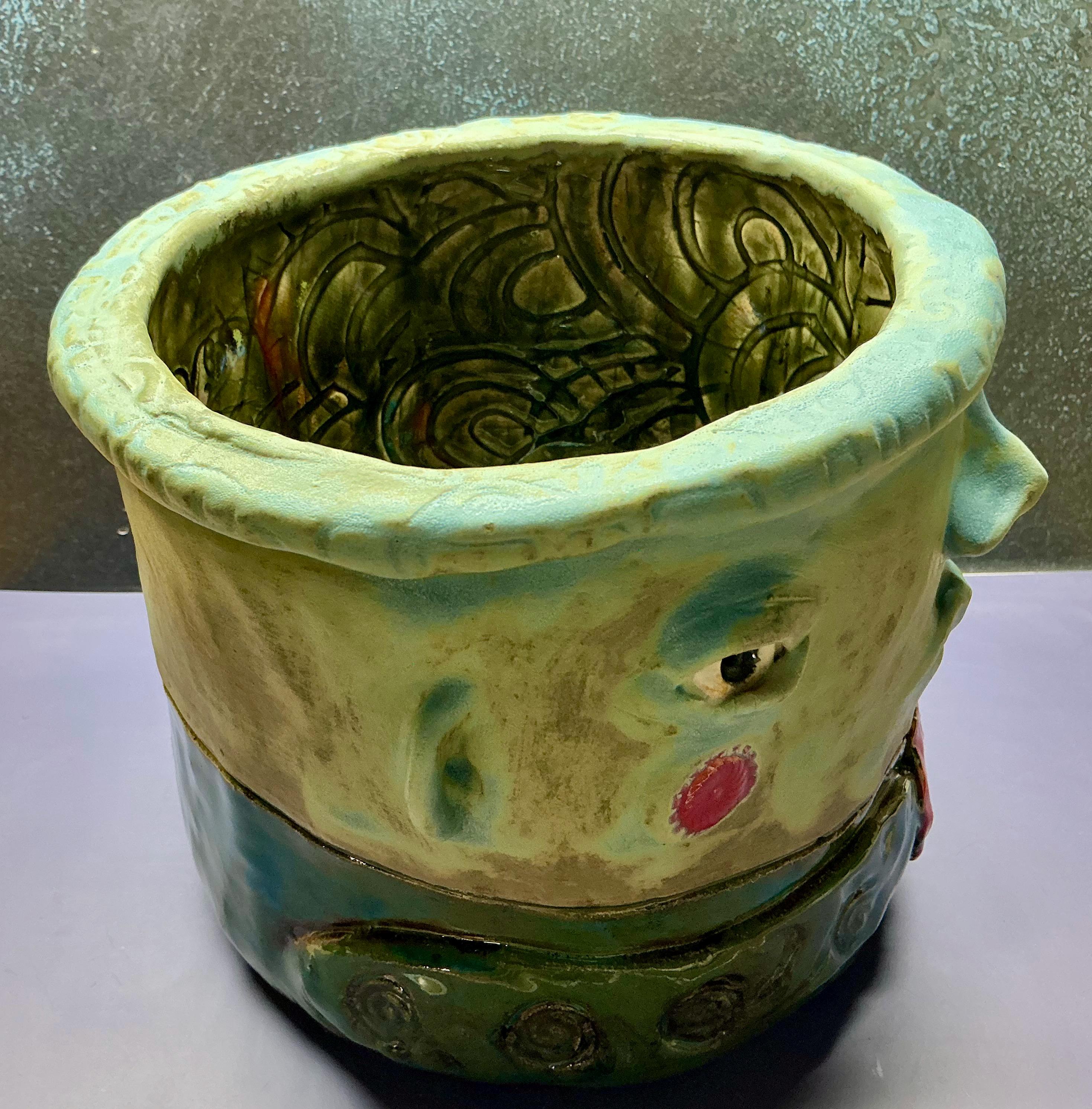 This listing is for one handmade ceramic face planter. Each piece has a whimsical face and is high fired to over 2200 degrees so you can place them indoors or out in all but extreme temperatures. These pieces look great with succulents, cat grass or other plant that looks like hair.