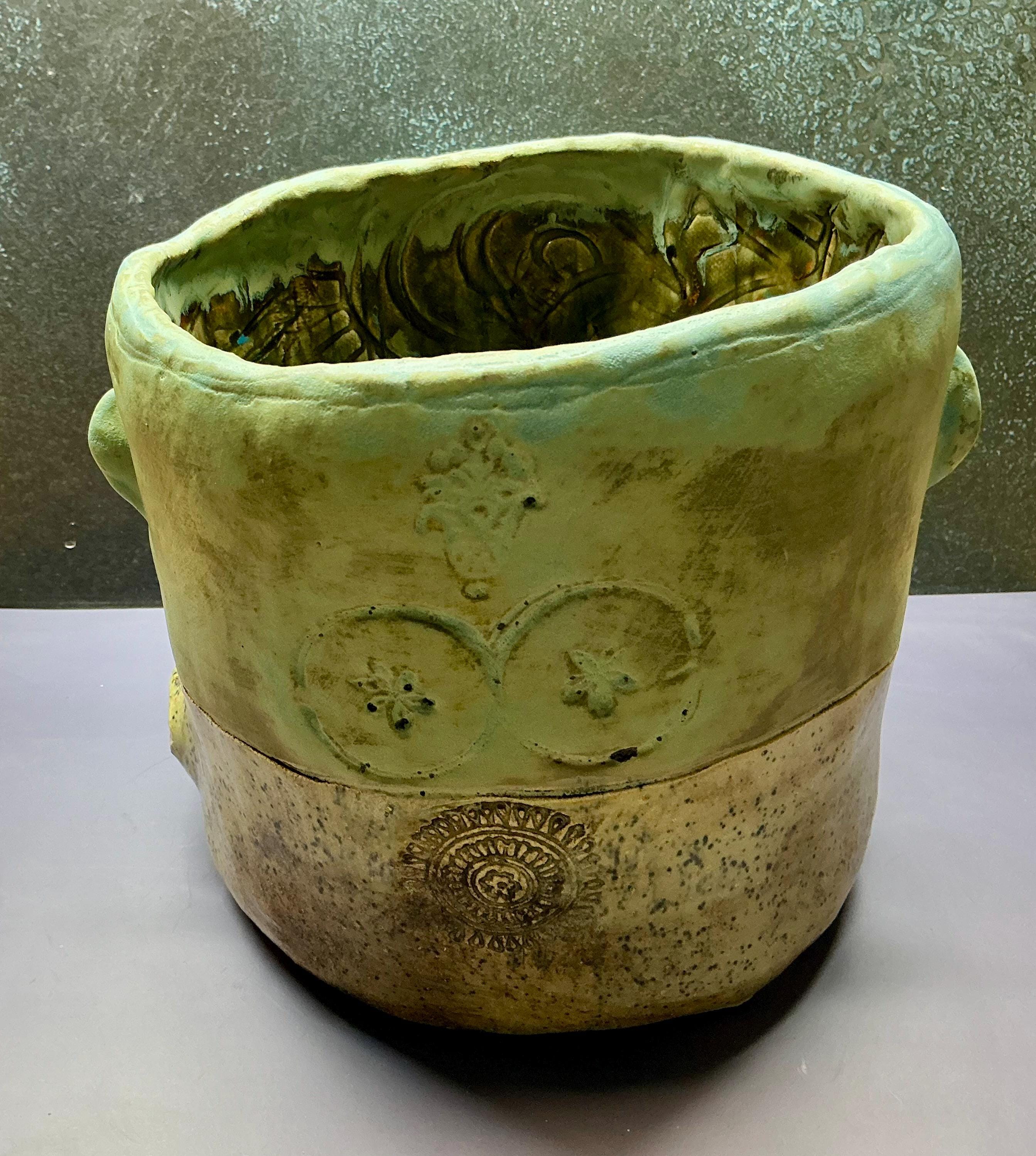 This listing is for one handmade ceramic face planter. Each piece has a whimsical face and is high fired to over 2200 degrees so you can place them indoors or out in all but extreme temperatures. These pieces look great with succulents, cat grass or other plant that looks like hair.