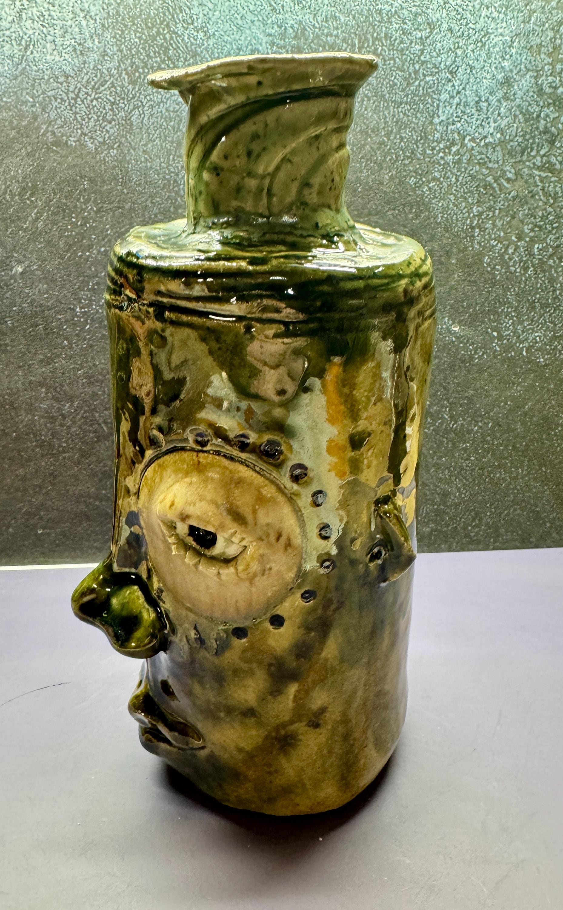This listing is for one handmade ceramic face vase. Each piece has a whimsical face and is high fired to over 2200 degrees. This vase can hold your favorite flowers or just bring some whimsy to your favorite shelf.
