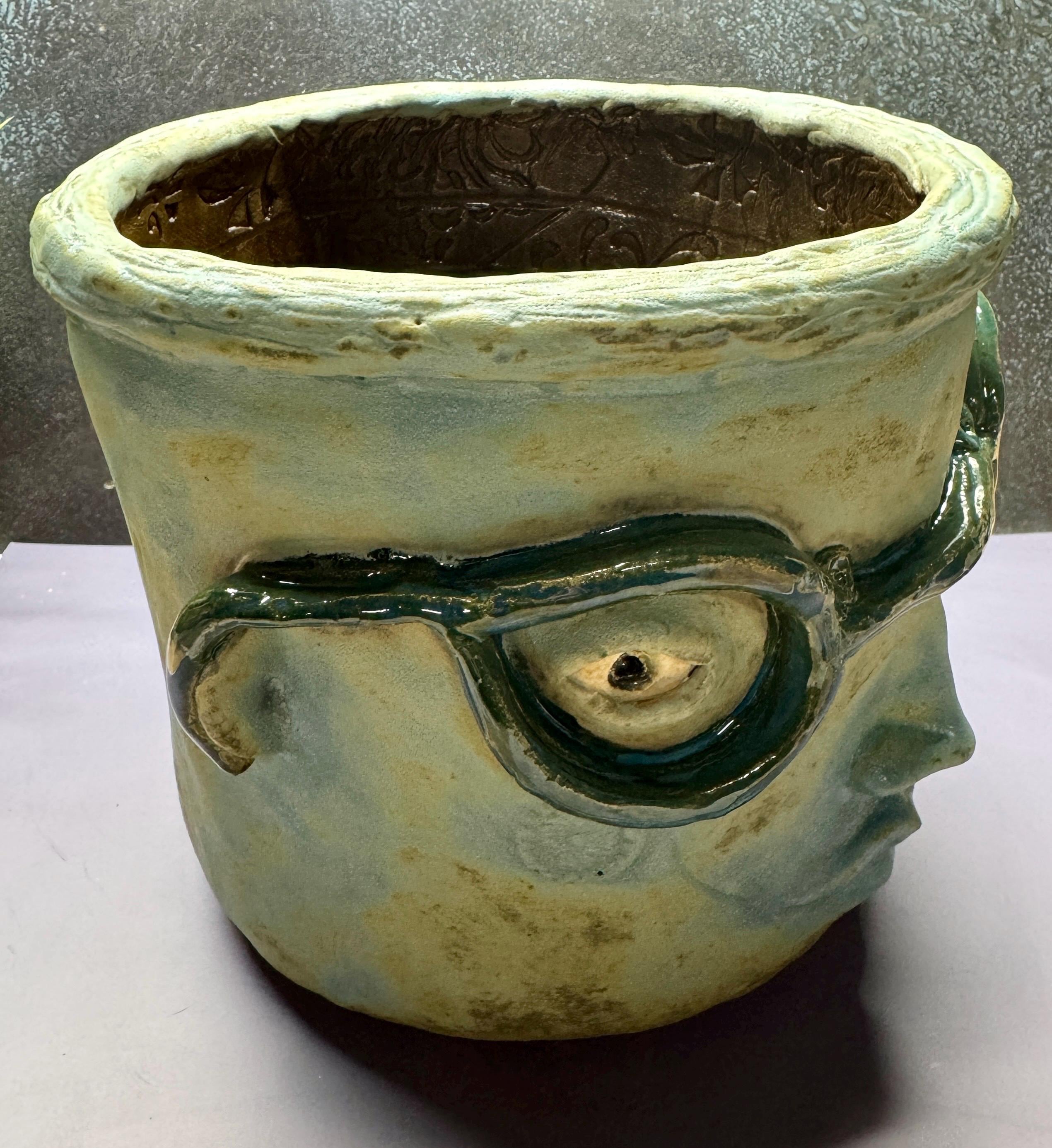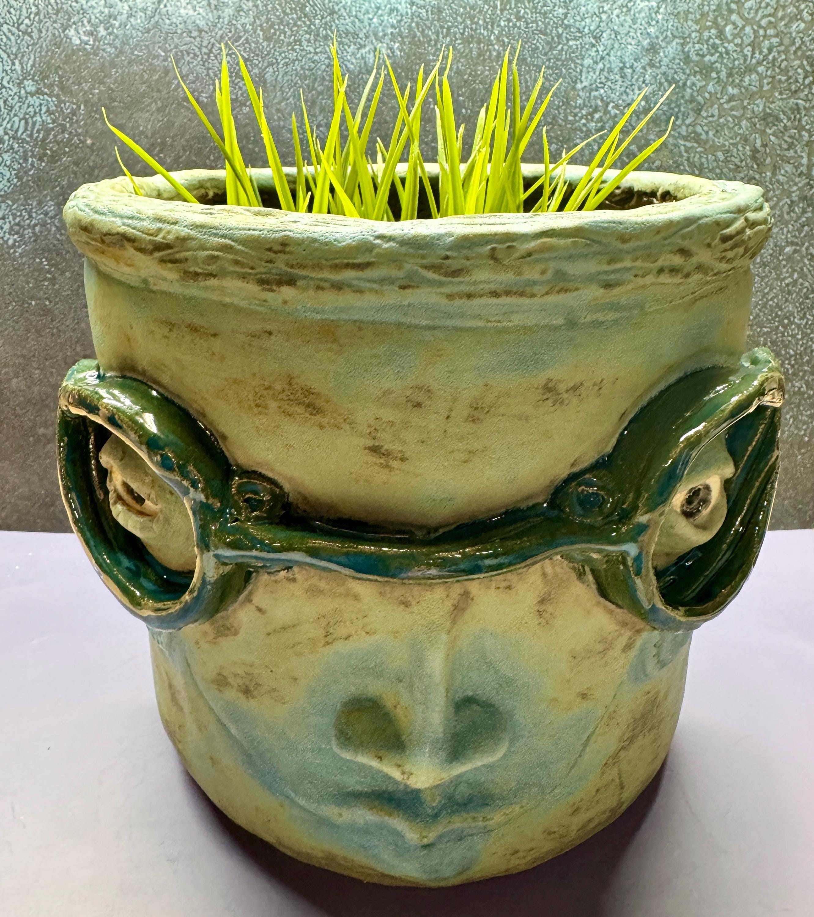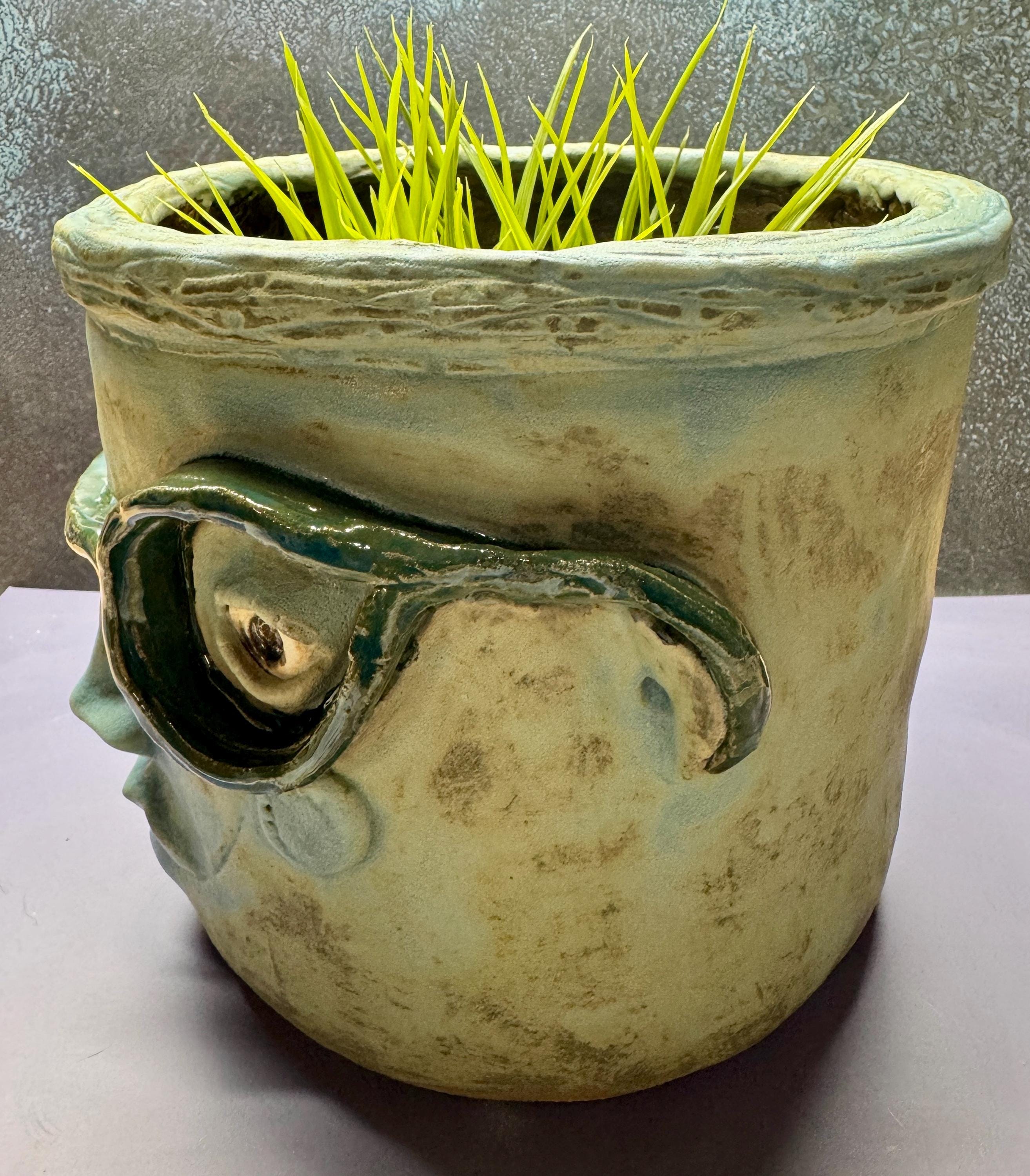 This listing is for one handmade ceramic face planter. Each piece has a whimsical face and is high fired to over 2200 degrees so you can place them indoors or out in all but extreme temperatures. These pieces look great with succulents, cat grass or other plant that looks like hair.