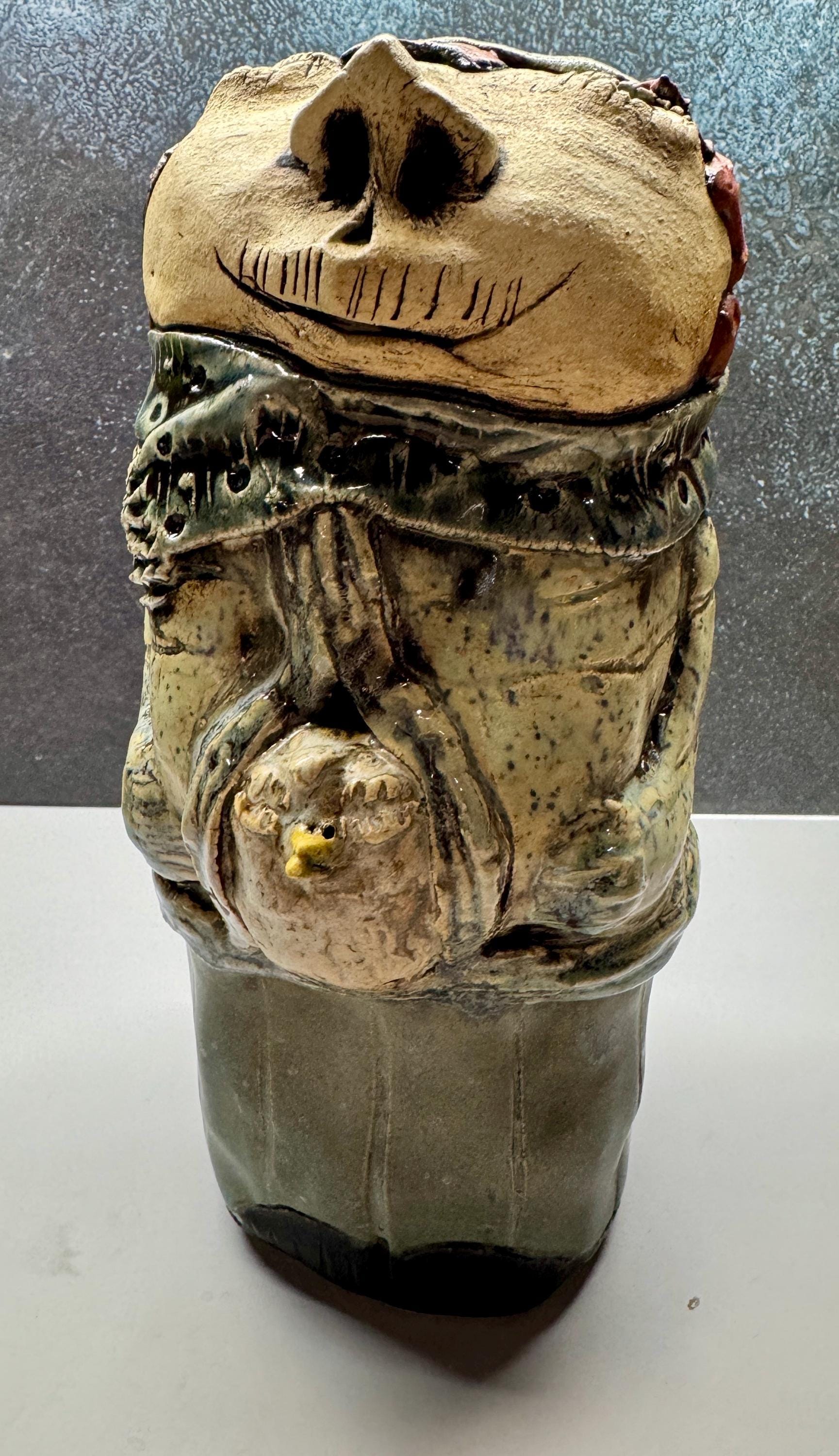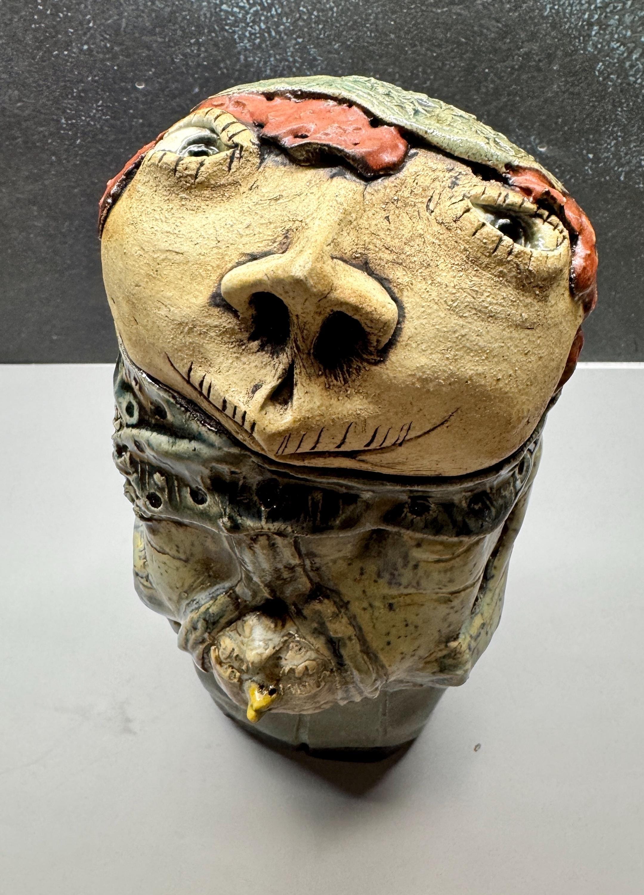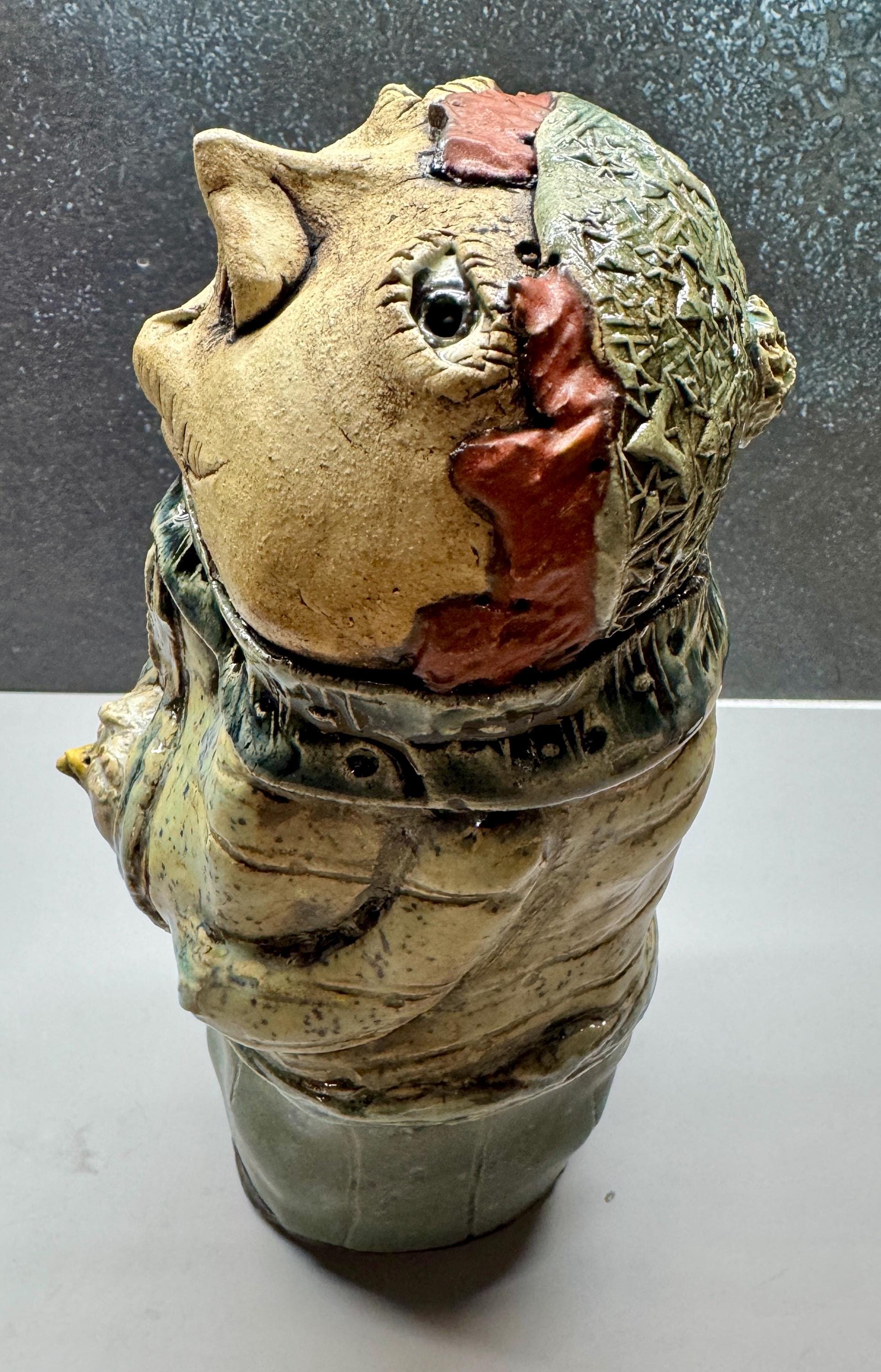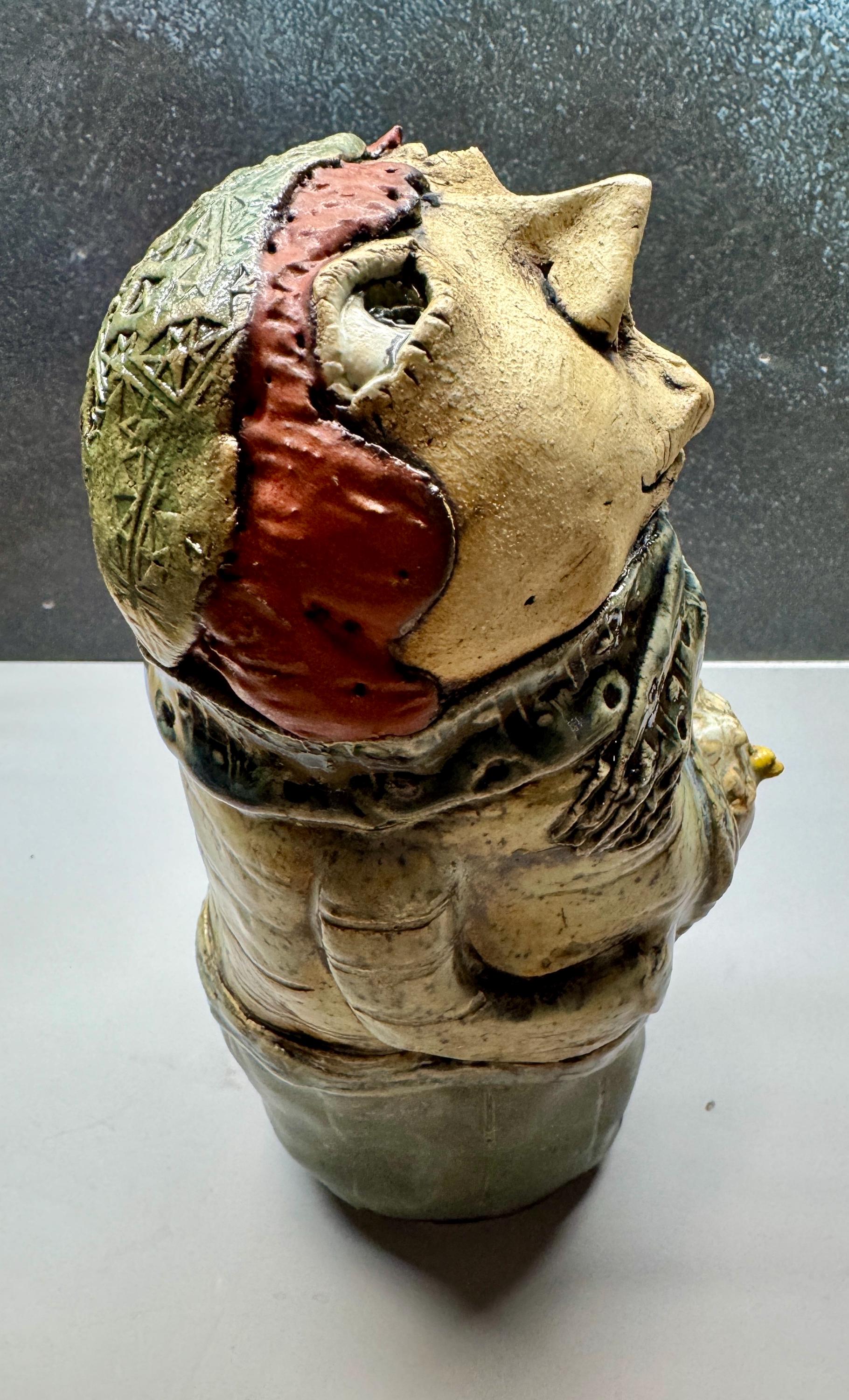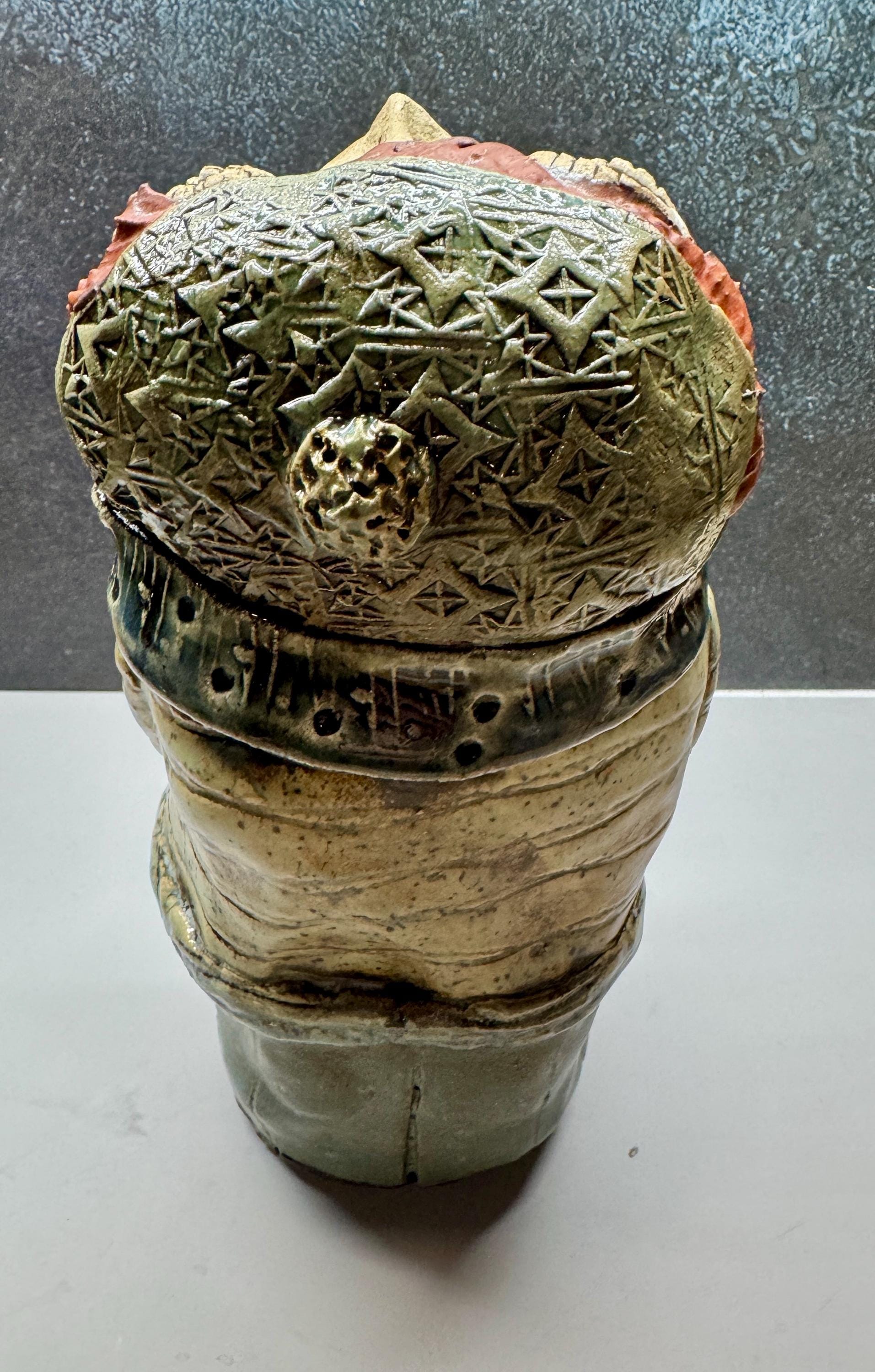 This listing is for one handmade ceramic sculpture. Each piece has a whimsical face and is high fired to over 2200 degrees so you can place them indoors or out in all but extreme temperatures.