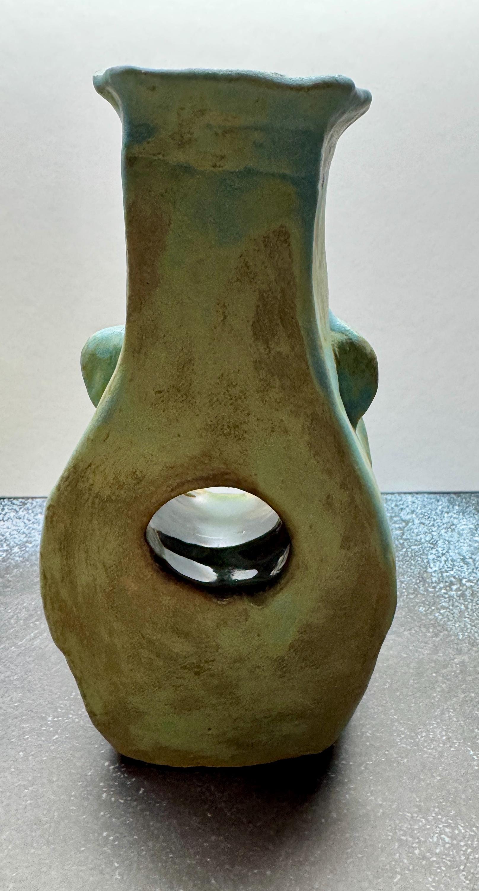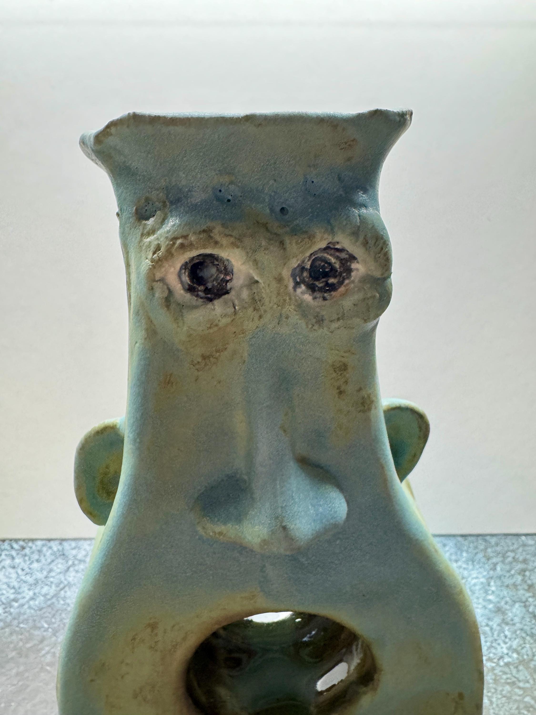 This listing is for one handmade ceramic face vase. Each piece has a whimsical face and is high fired to over 2200 degrees. This vase can hold your favorite flowers or just bring some whimsy to your favorite shelf.