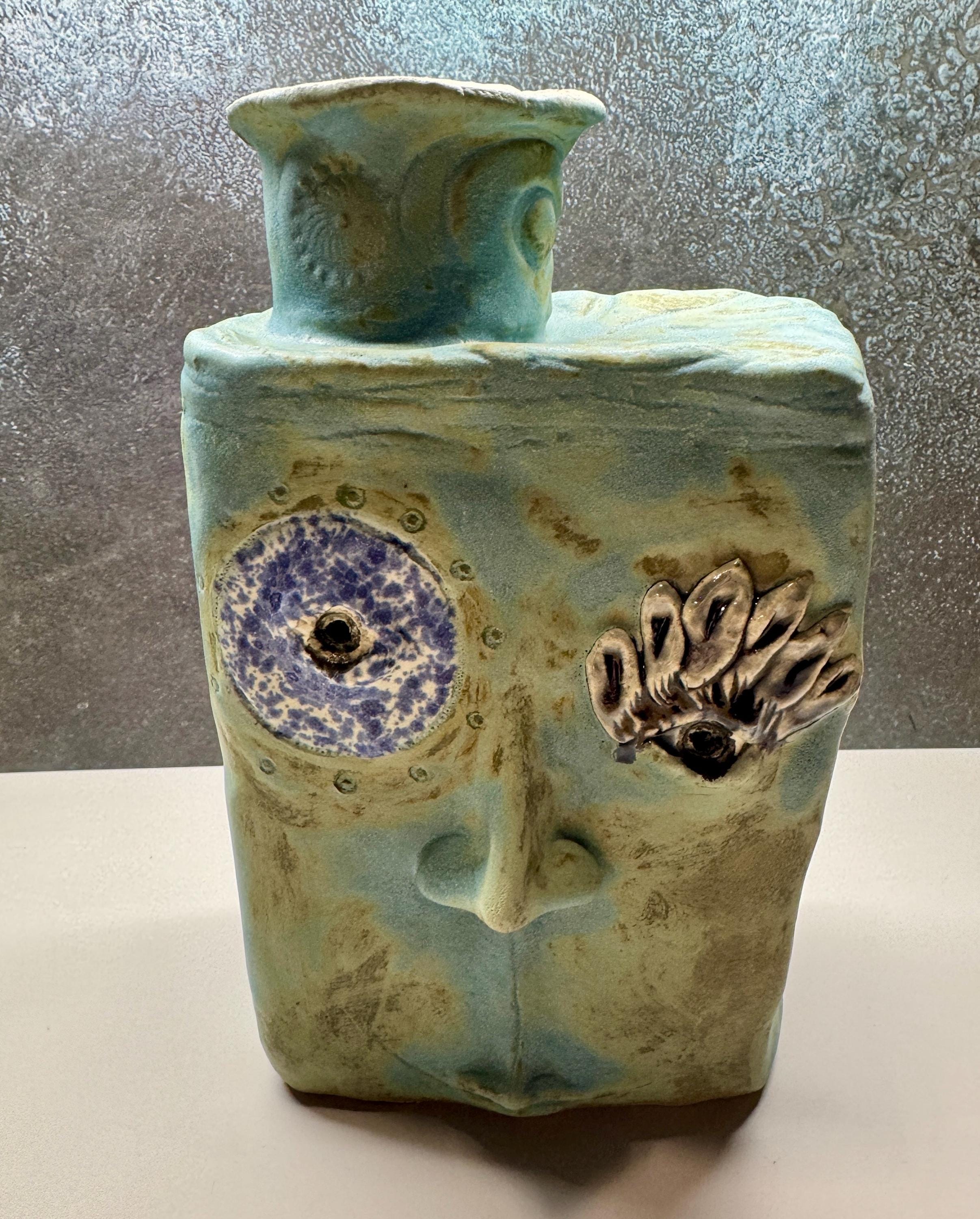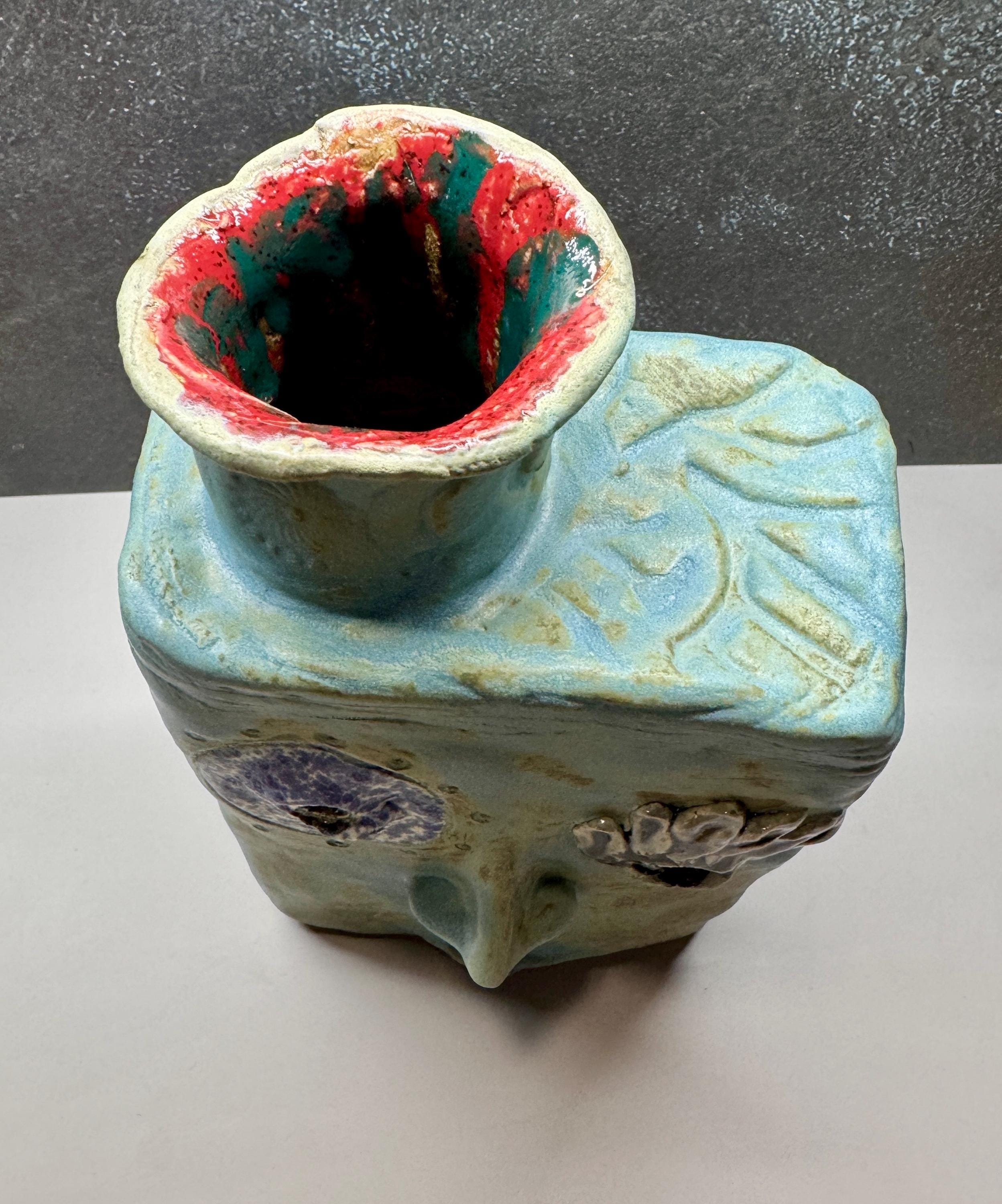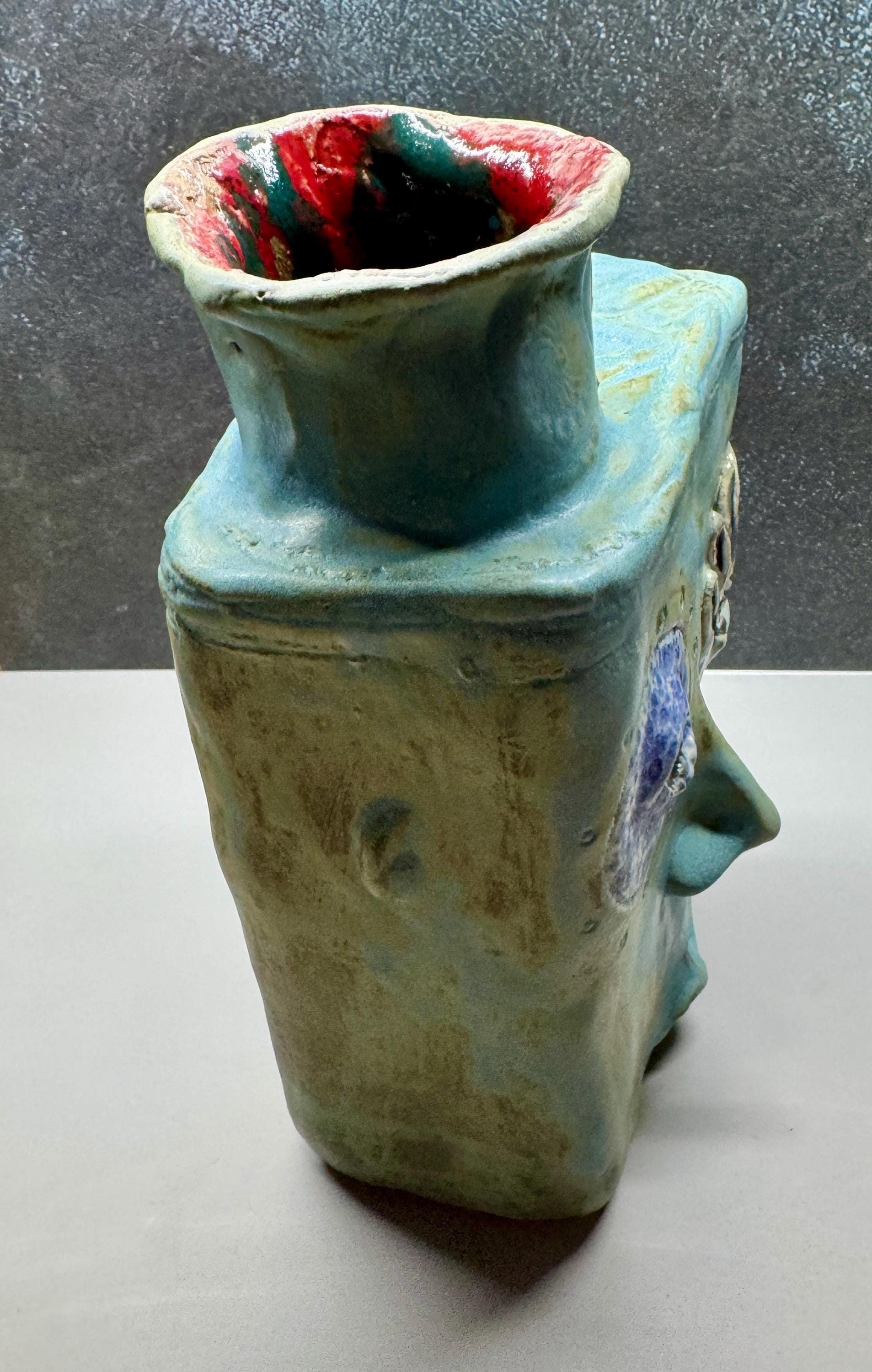 This listing is for one handmade ceramic face vase. Each piece has a whimsical face and is high fired to over 2200 degrees. This vase can hold your favorite flowers or just bring some whimsy to your favorite shelf.
