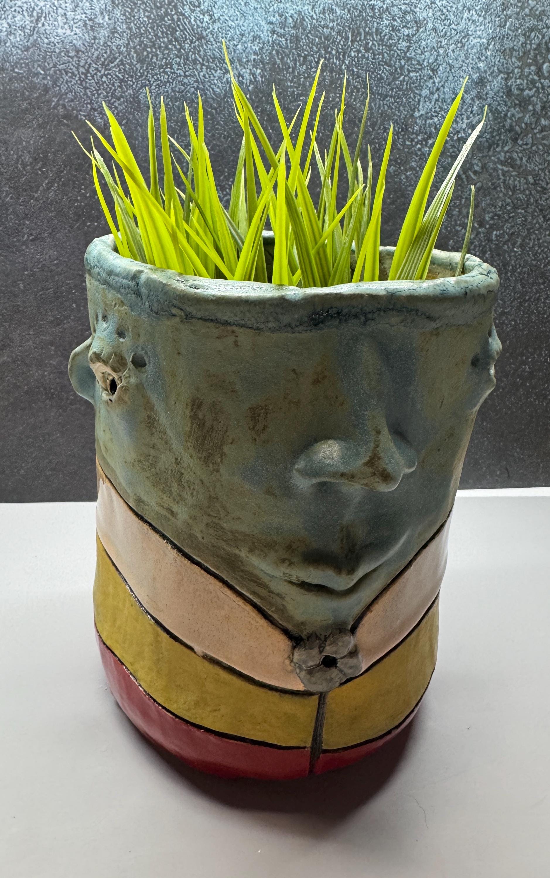 This listing is for one handmade ceramic face planter. Each piece has a whimsical face and is high fired to over 2200 degrees so you can place them indoors or out in all but extreme temperatures. These pieces look great with succulents, cat grass or other plant that looks like hair.