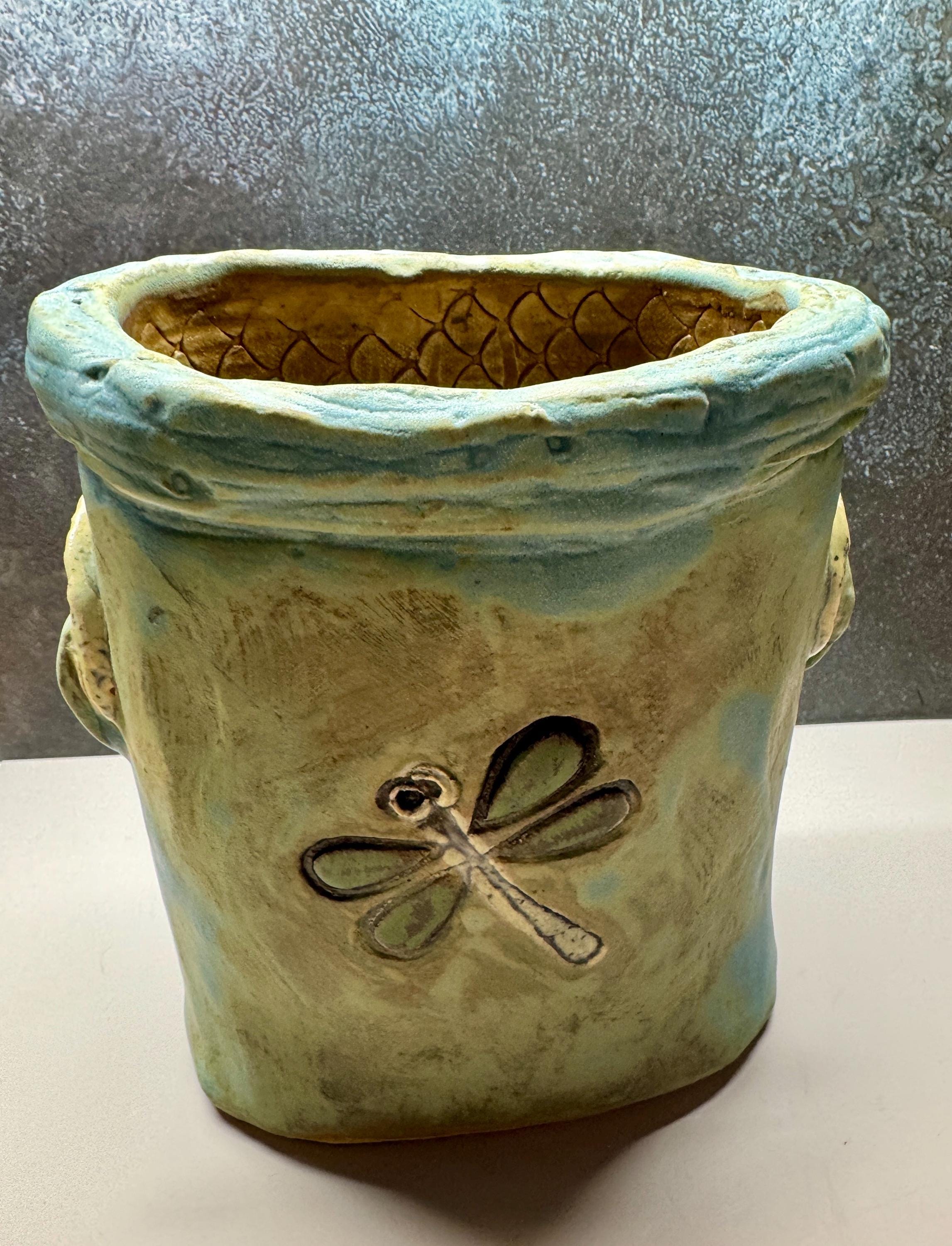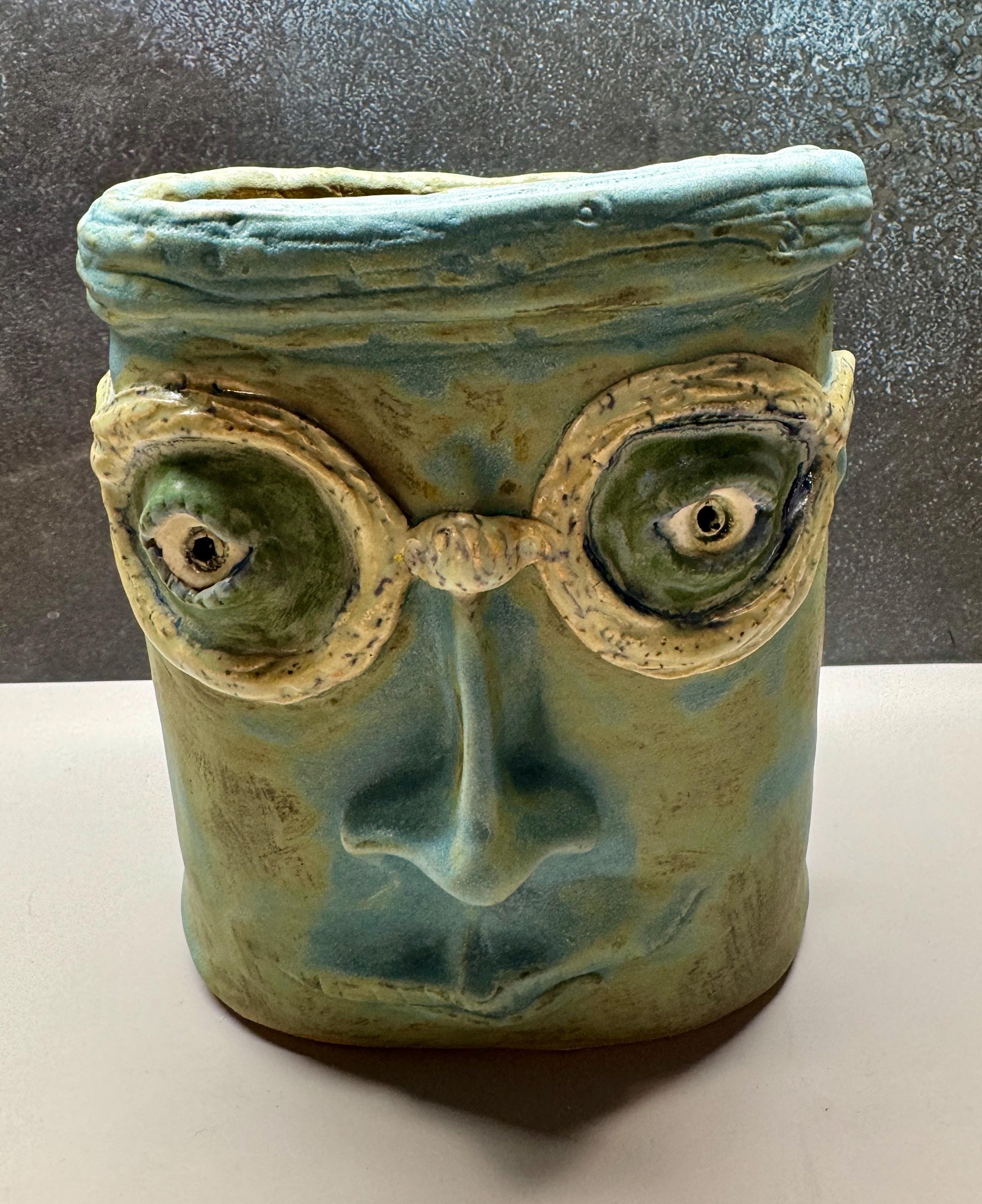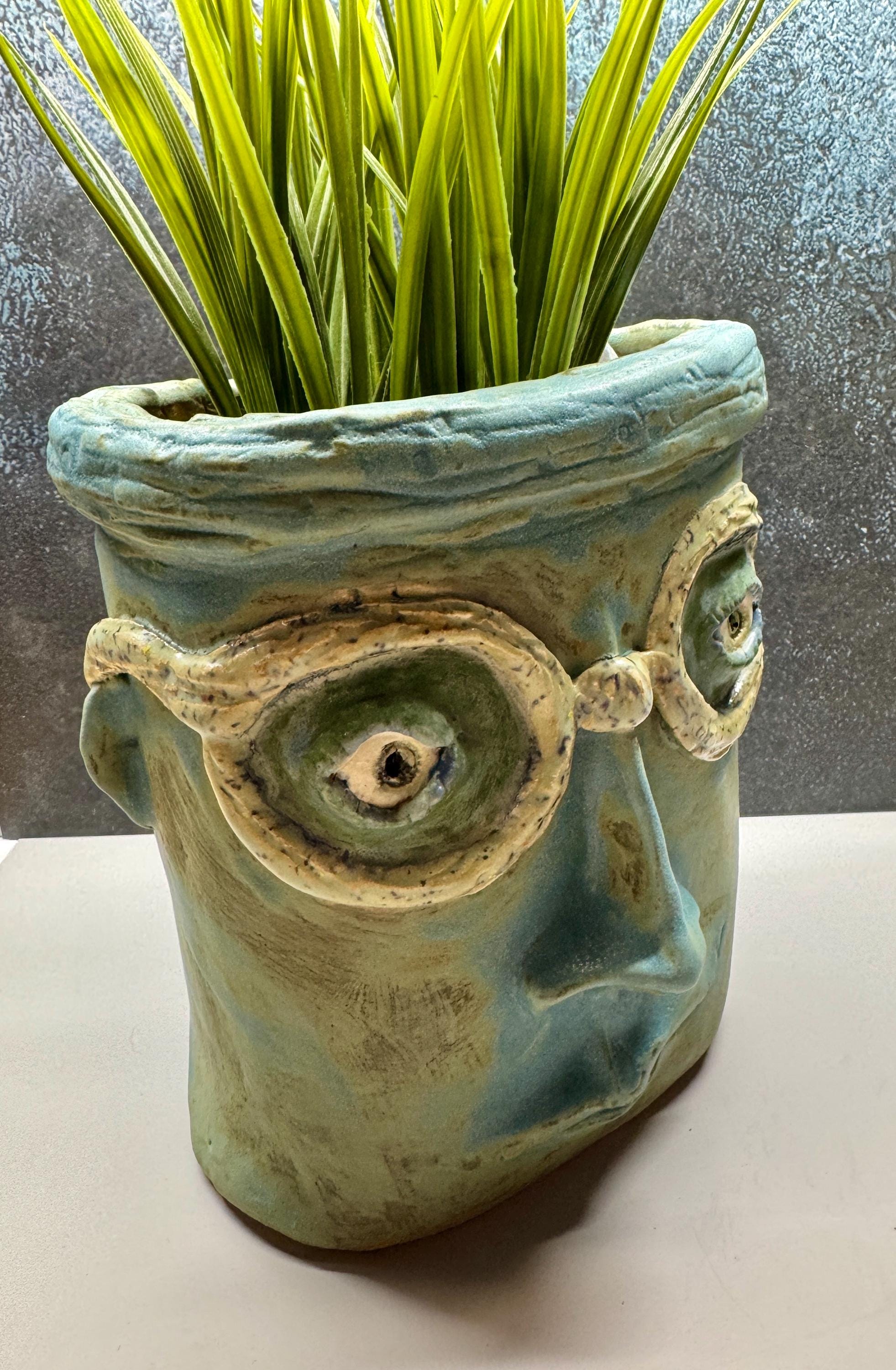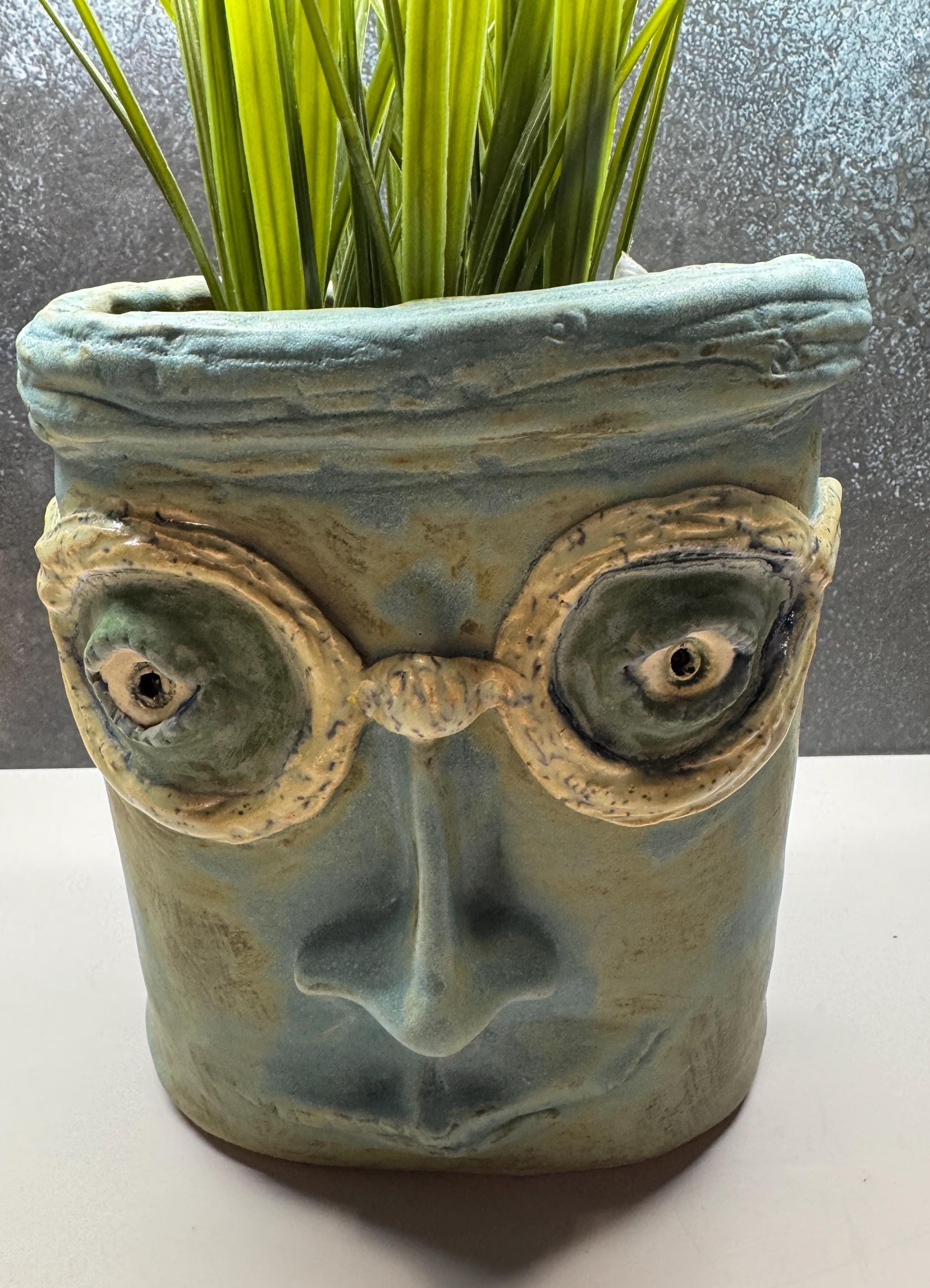 This listing is for one handmade ceramic face planter. Each piece has a whimsical face and is high fired to over 2200 degrees so you can place them indoors or out in all but extreme temperatures. These pieces look great with succulents, cat grass or other plant that looks like hair.