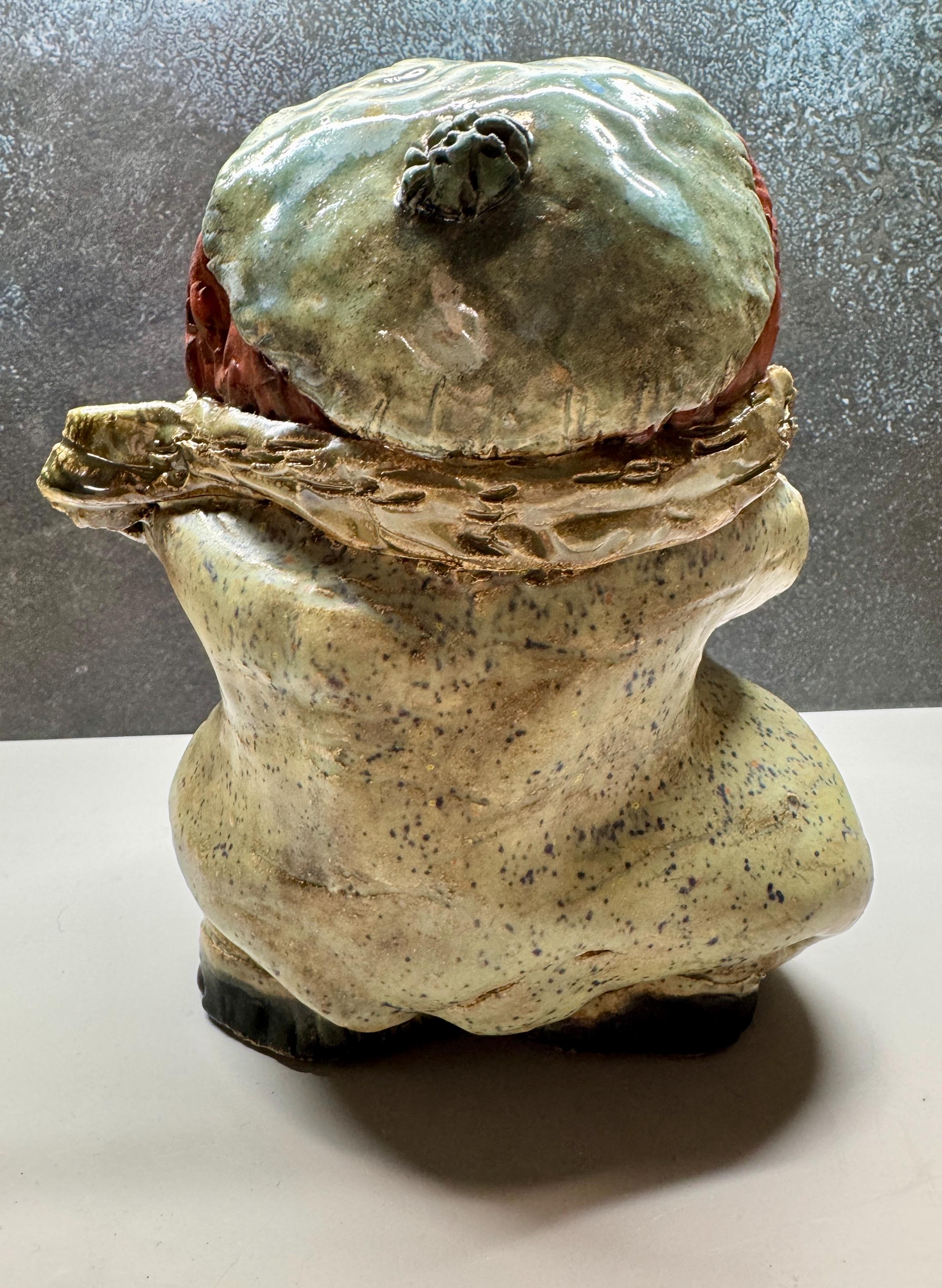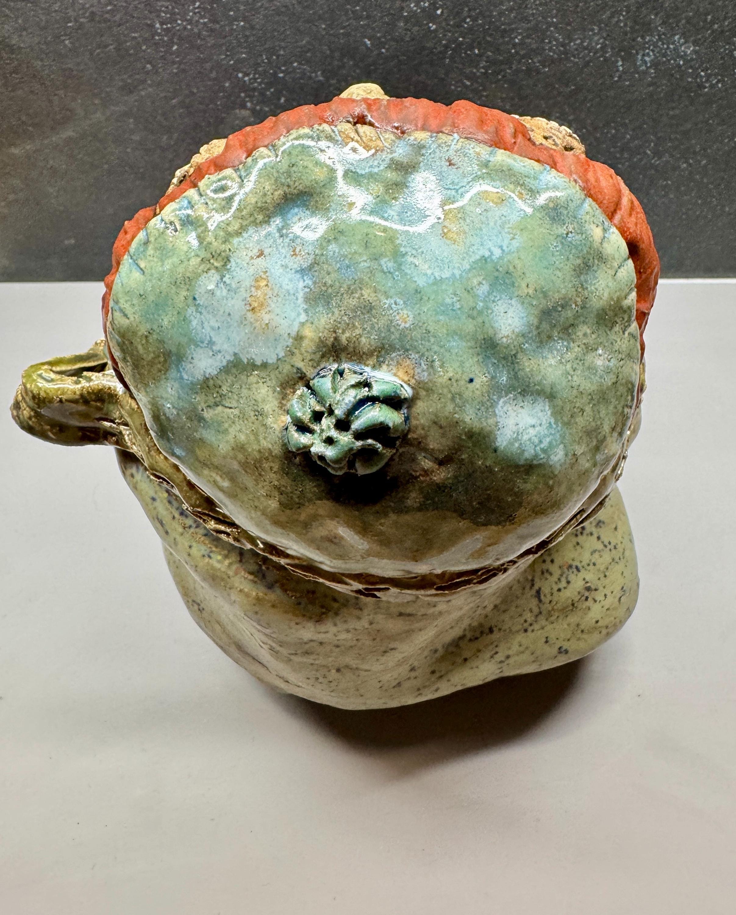 This listing is for one handmade ceramic sculpture. Each piece has a whimsical face and is high fired to over 2200 degrees so you can place them indoors or out in all but extreme temperatures.