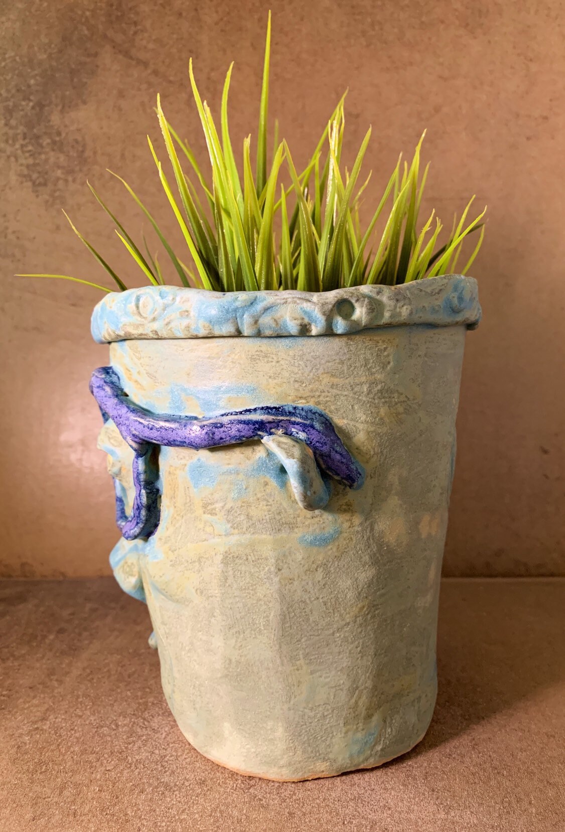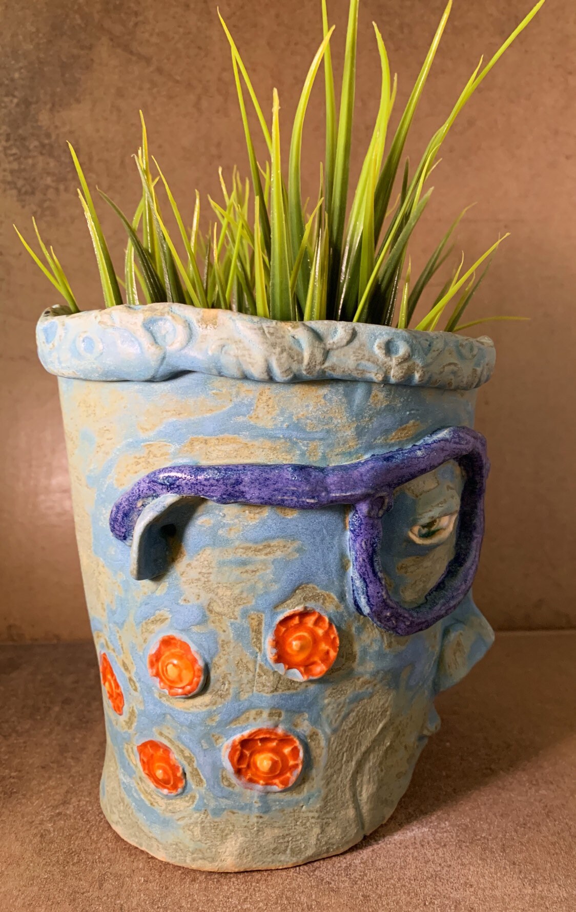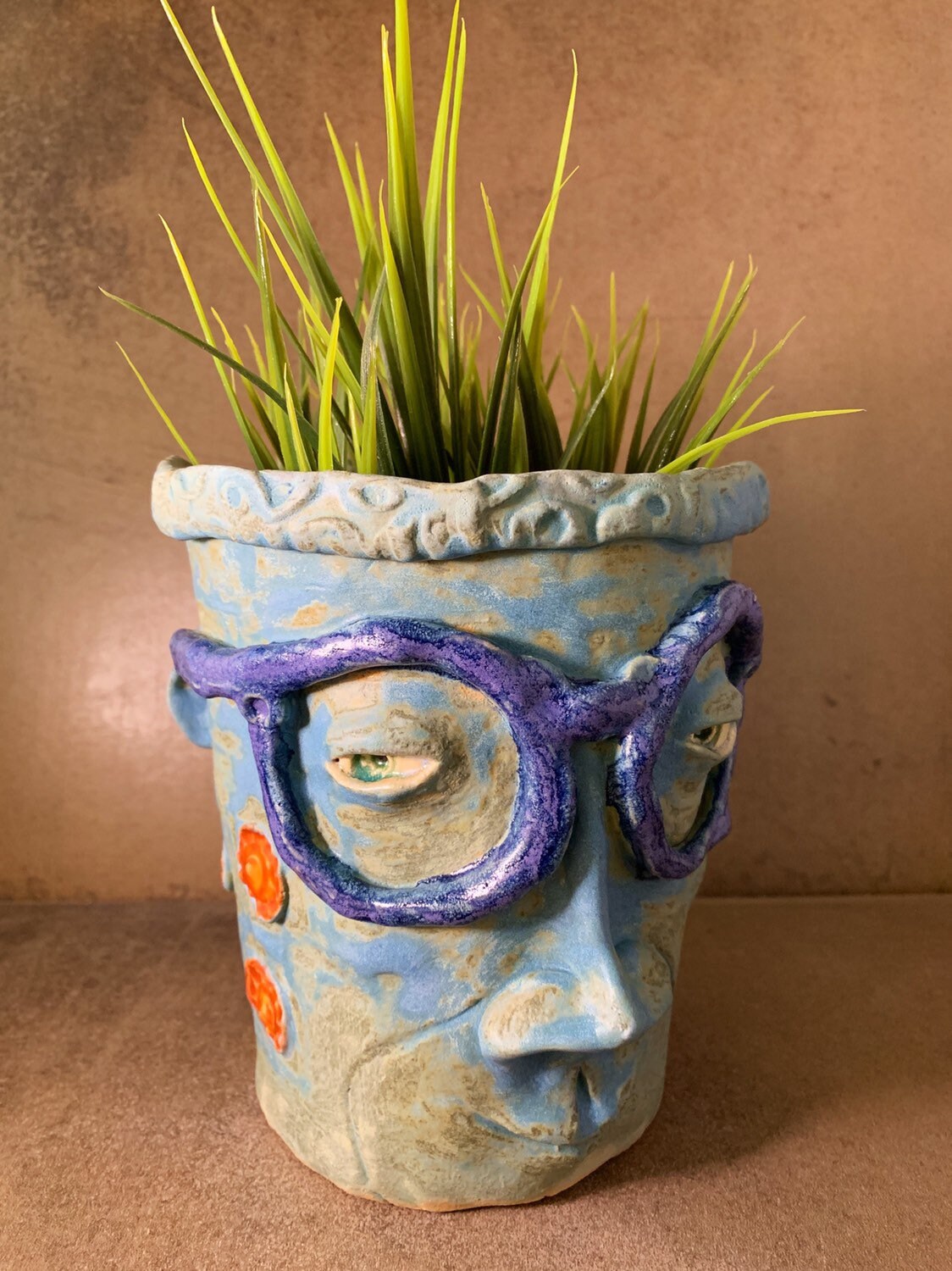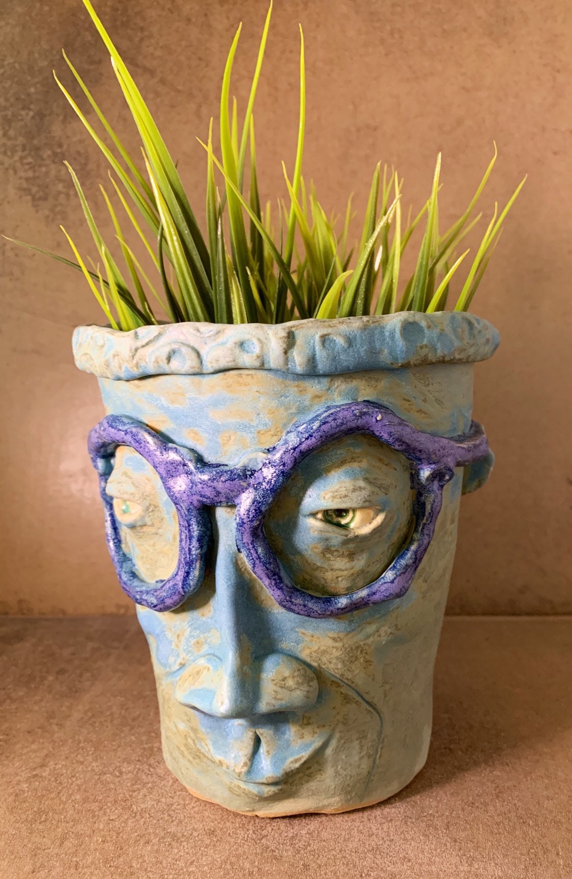 This listing is for a high fired ceramic piece made in my Portland, Oregon studio. This face planter is designed to be planted indoors or out (in all but extreme temperatures). The piece measures approximately 6" x 5"and has a hole in the bottom for drainage.
