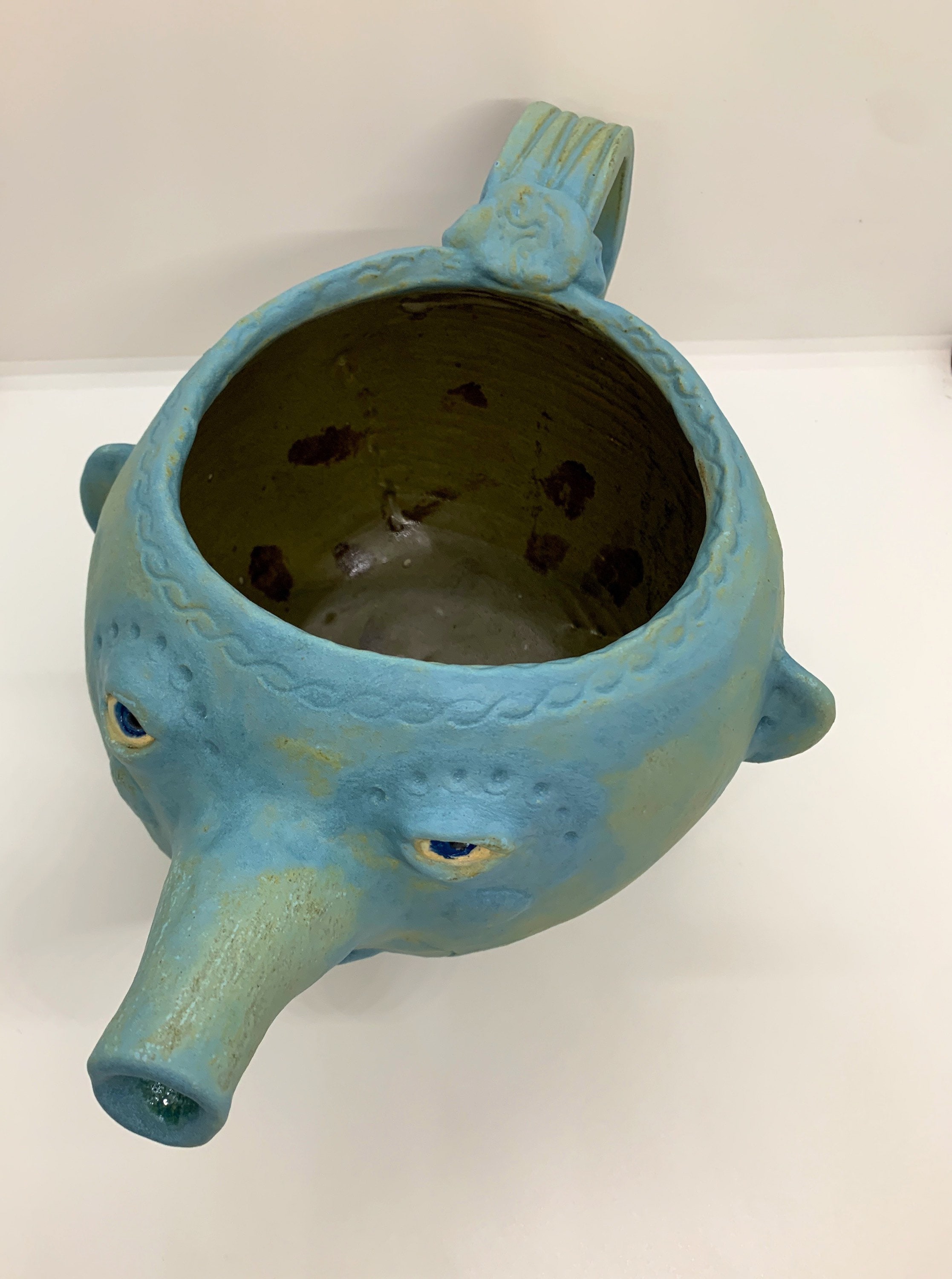 These pieces average approximately 6” tall and 11” wide and are glazed in various colors. There is also a drain hole in each face planter.