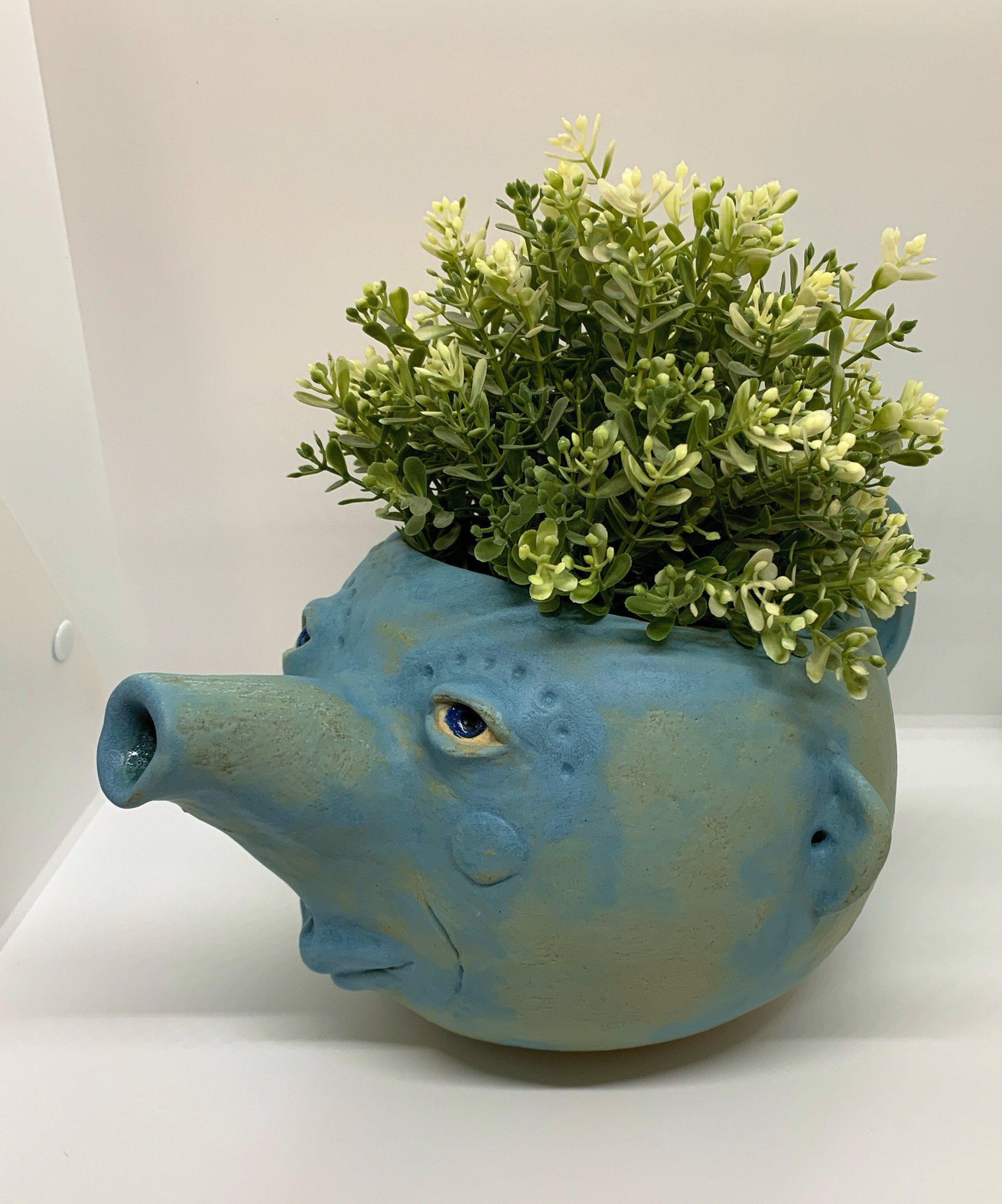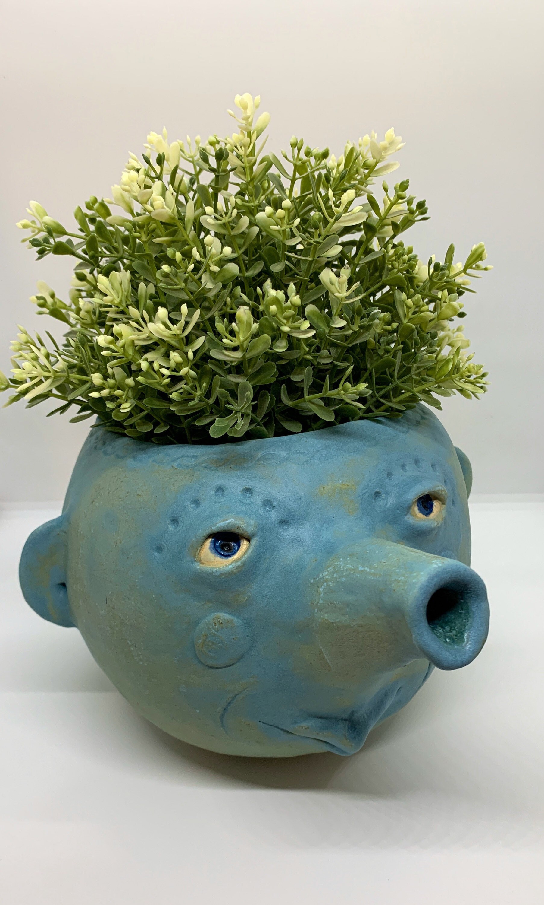 This listing is for one handmade ceramic face planter. Each piece has a whimsical face and is high fired to over 2200 degrees so you can place them indoors or out in all but extreme temperatures. These pieces look great with succulents, cat grass or other plant that looks like hair.
