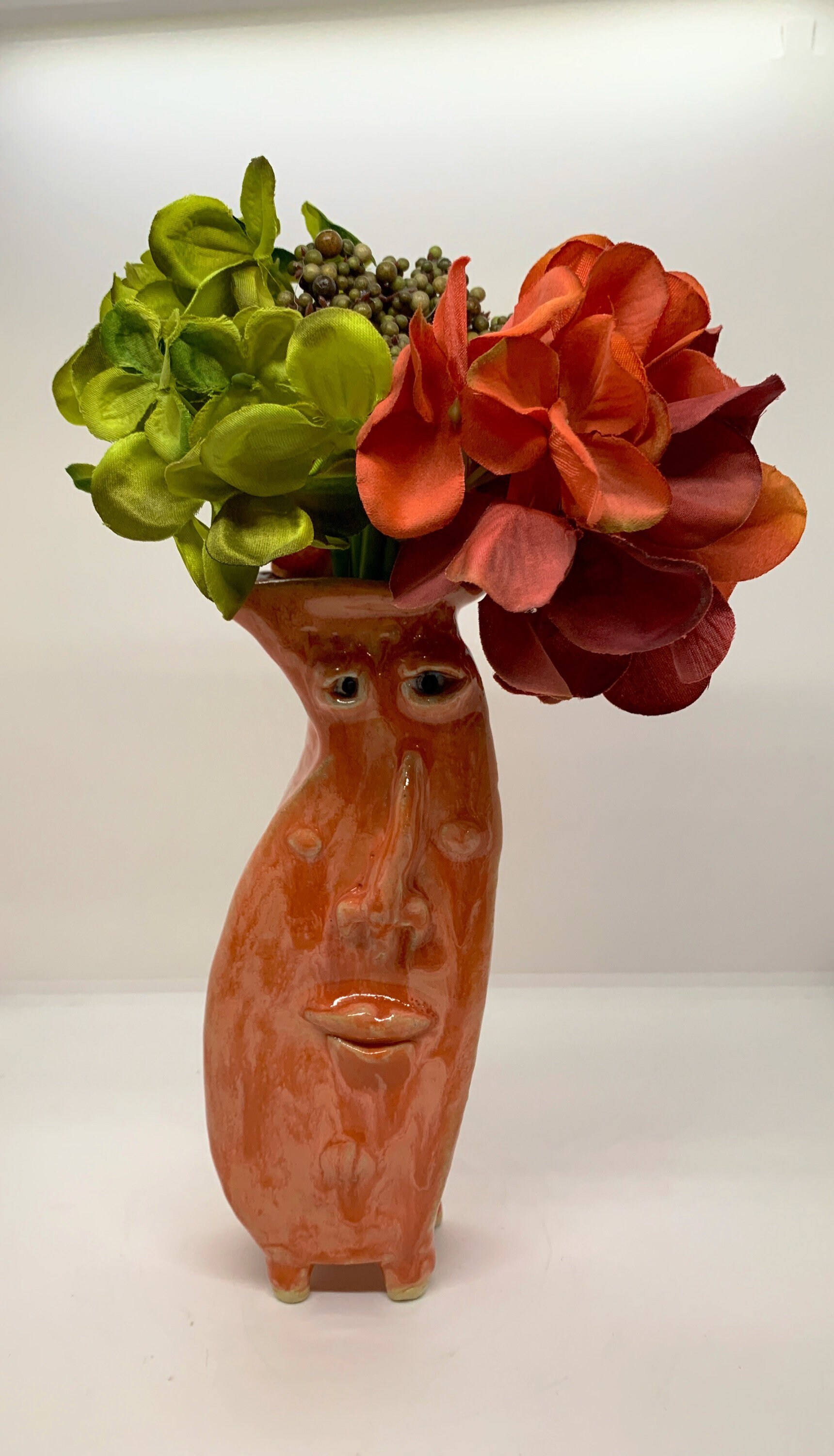 This listing is for a high fired ceramic piece made in my Portland, Oregon studio. This face vase can hold your most beautiful flower arrangements or just take space on your favorite shelf. The piece measures approximately 8” tall and the base is approx. 3” wide.